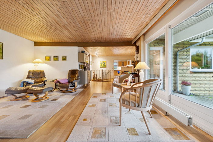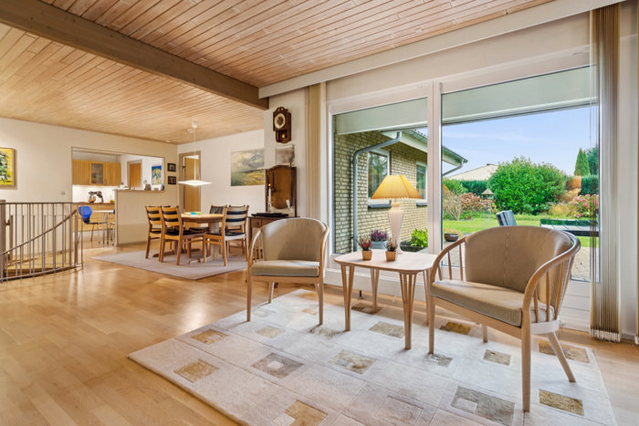 Indenfor mødes du af lyse og indbydende rum med en veldisponeret planløsning. Stuen byder på smukke lysindfald, god loftshøjde og en varm, hjemlig stemning.
