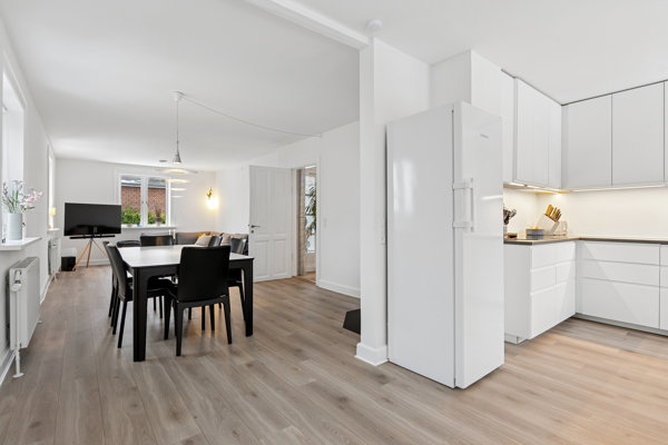 Planløsningen er optimal med lækkert nyere køkken med udgang til haven og i åben forbindelse med den store stue. Den store entre giver adgang til alle 3 værelser samt badeværelset. Herudover nedgang til den gode kælder med et kæmpe stort rum, 2 store rum, badeværelse, vaskefaciliteter m.v.