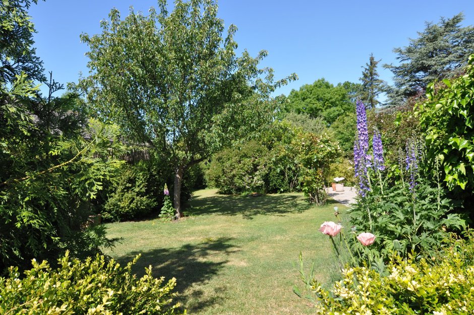 Grunden er på 936 kvm og består af en græsplæne, fliseterrasser, gårdhave med udhus og fine bede.