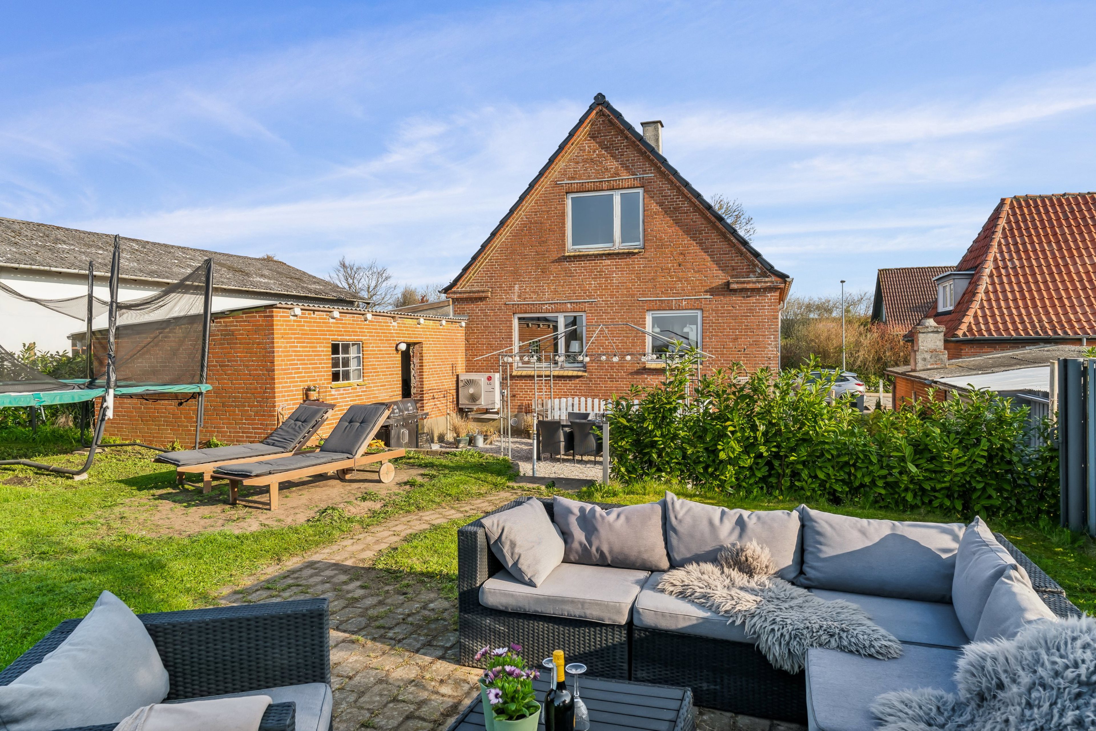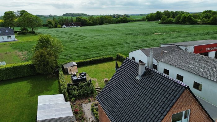 Grunden er på 493 m² og rummer en dejlig sydvendt have og et godt ugeneret terrassemiljø med masser af sol, lys og luft – og ikke mindst en helt fantastisk udsigt over de åbne marker. Her får du følelsen af ro og natur lige uden for døren. Beliggenheden giver desuden mulighed for at tænke stort: ønsker du en ny bolig, kan du overveje at nedrive det eksisterende hus og opføre nyt, tættere på marken og med fuldt fokus på udsigten (evt. nedrivning kræver naturligvis Hedensted Kommunes tilladelse)
