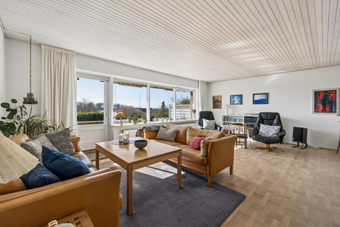 Lys og indbydende bolig med tre værelser, stor stue og en skøn sydvendt terrasse.