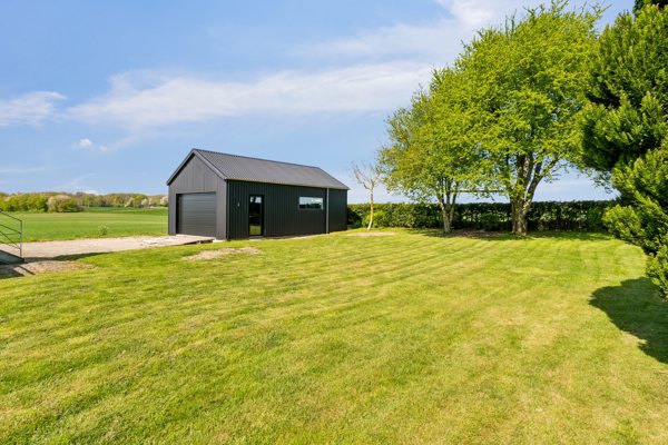 Udvendigt er der gjort en stor indsats for at vedligeholde ejendommen. I 2024 blev murværket repareret, huset fik fiberpuds og blev malet, så det fremstår pænt og indbydende. Den nyopførte, isolerede garage ² har egen eltavle og er klargjort til varmepumpe, hvilket giver gode muligheder for både opbevaring og værkstedsaktiviteter. Ved indgangen er der desuden et overdækket areal med mange praktiske funktioner