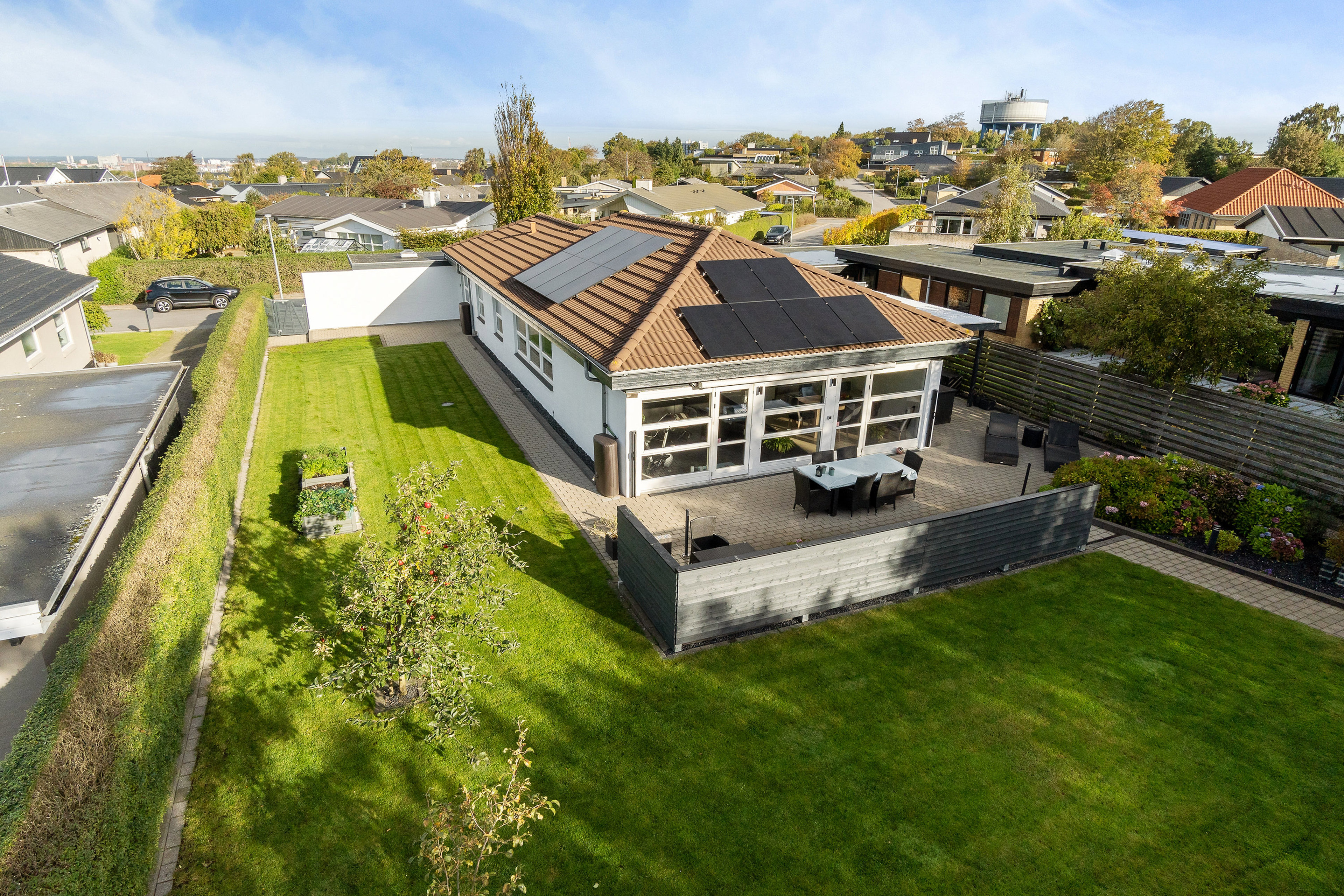 Velkommen til et hjem, hvor komfort, varme og gennemtænkt indretning går hånd i hånd. Allerede ved ankomsten fornemmer du roen – en hyggelig, lukket have omkranser huset som en grøn oase, hvor fuglesang og duften af blomster skaber en fredfyldt ramme. Her kan børnene lege trygt, mens du nyder dagens sidste solstråler på terrassen.