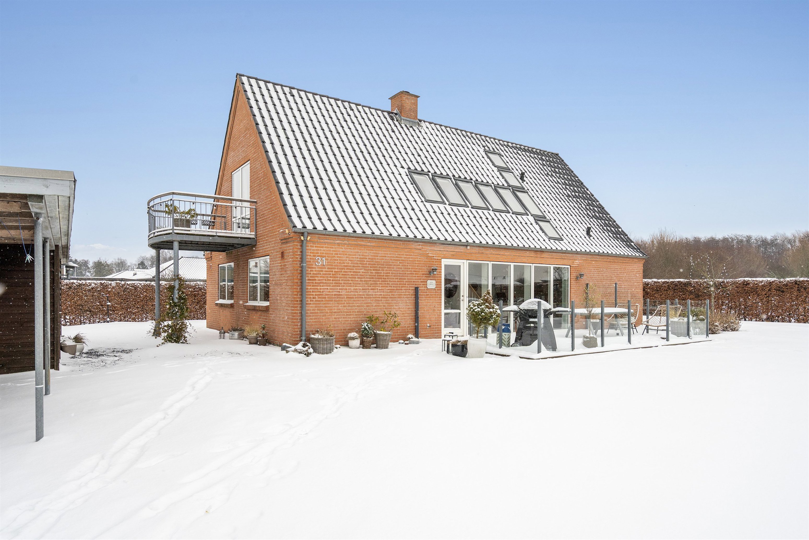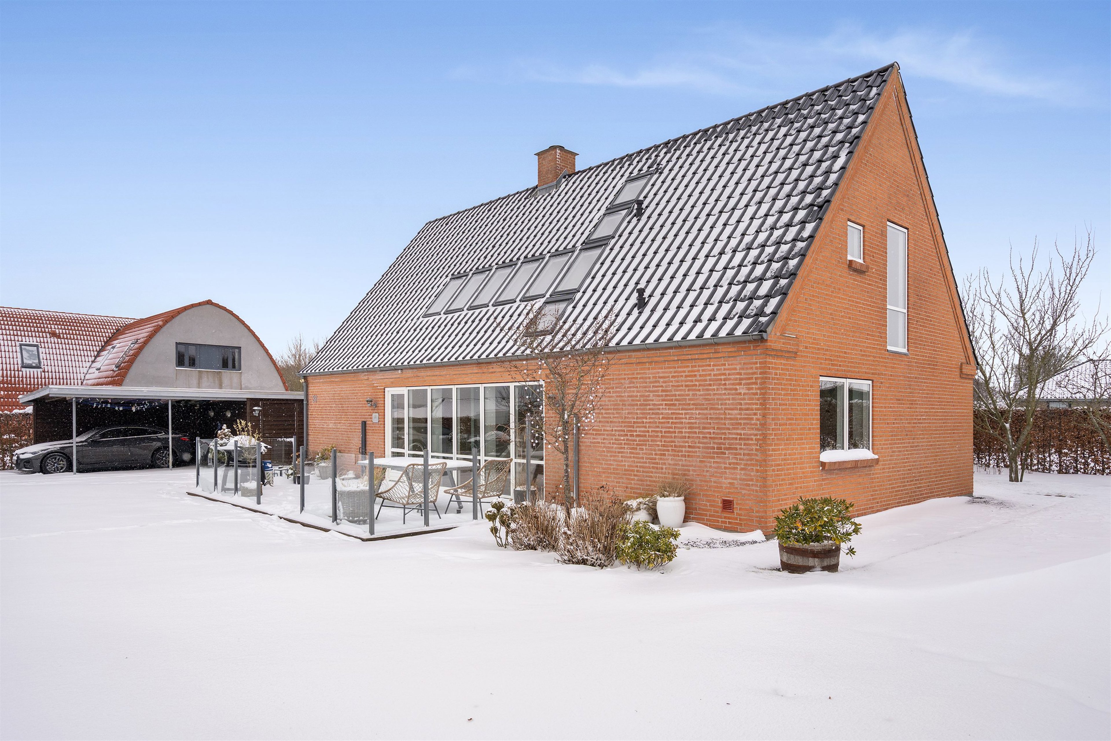 Udendørs er haven primært anlagt med græs, hvilket gør den nem og overskuelig at holde. Med en robotplæneklipper er vedligeholdelsen minimal, så I i stedet kan bruge tiden på at nyde omgivelserne. Til ejendommen hører desuden carport samt et godt udhus med mange anvendelsesmuligheder – oplagt til hobby, værksted eller ekstra opbevaring. Grønnemosevej 31 er ikke blot en bolig – det er et hjem.