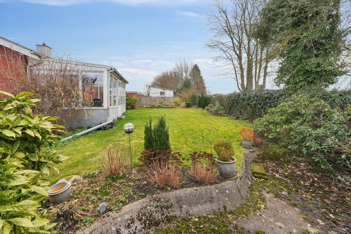 Villaen har en nem og overskuelig have, som rummer plads til både leg, afslapning og hyggelige stunder.