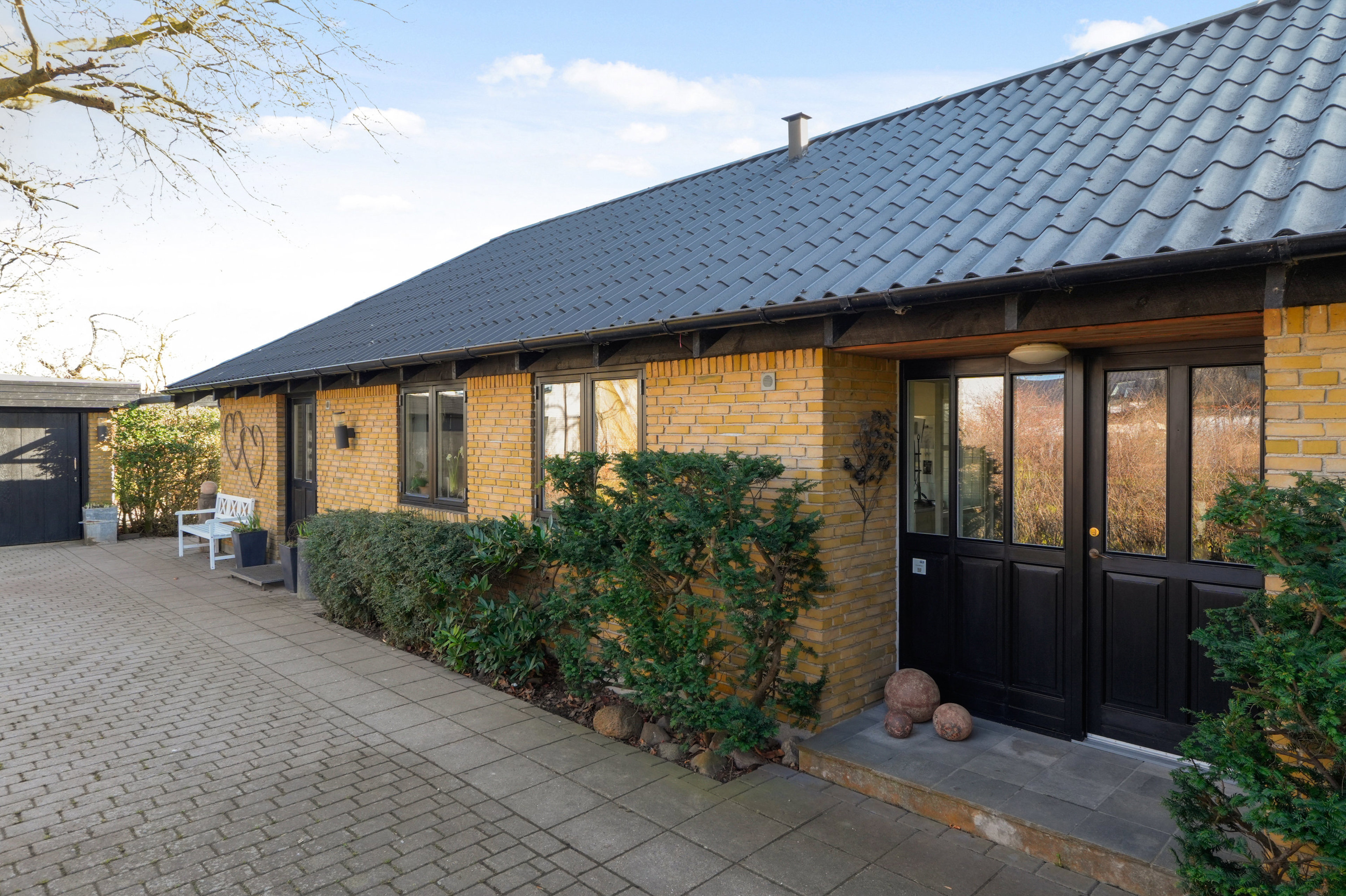 Med hele 1.791 m² omkring jer får I også rigeligt plads udenfor. Haven er godt afskærmet mod vejen, hvor tæt bøgehæk og velvoksne løvtræer blokerer for indkig. Her er der samtidig gode muligheder for børneleg, hvor de kan gå på opdagelse, gemme sig og bygge huler i haven, mens den indhegnede indkørsel giver plads til leg og aktivitet. På plads er også terrasserne, hvor det overdækkede udemiljø får en særlig stjerne. Det samme gør drivhuset, stauderne og de otte frugttræer, hvor I skal gøre jer umage for at følge med udbyttet i hjemmeproduktionen.