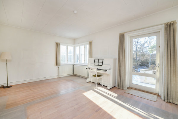Boligen byder på en rummelig entré, der giver adgang til hele to store stuer en suite, som kan indrettes med både opholds-, spise- og dagligstue. Det ældre køkken ligger i forbindelse med opholdszonerne og giver mulighed for modernisering efter eget ønske. Derudover findes et ældre badeværelse med badekar, et separat gæstetoilet samt tre gode soveværelser, der tilsammen skaber en funktionel planløsning for familien. Husets 50 m² tilbygning med separat adgang sætter prikken over i’et med to gode rum som