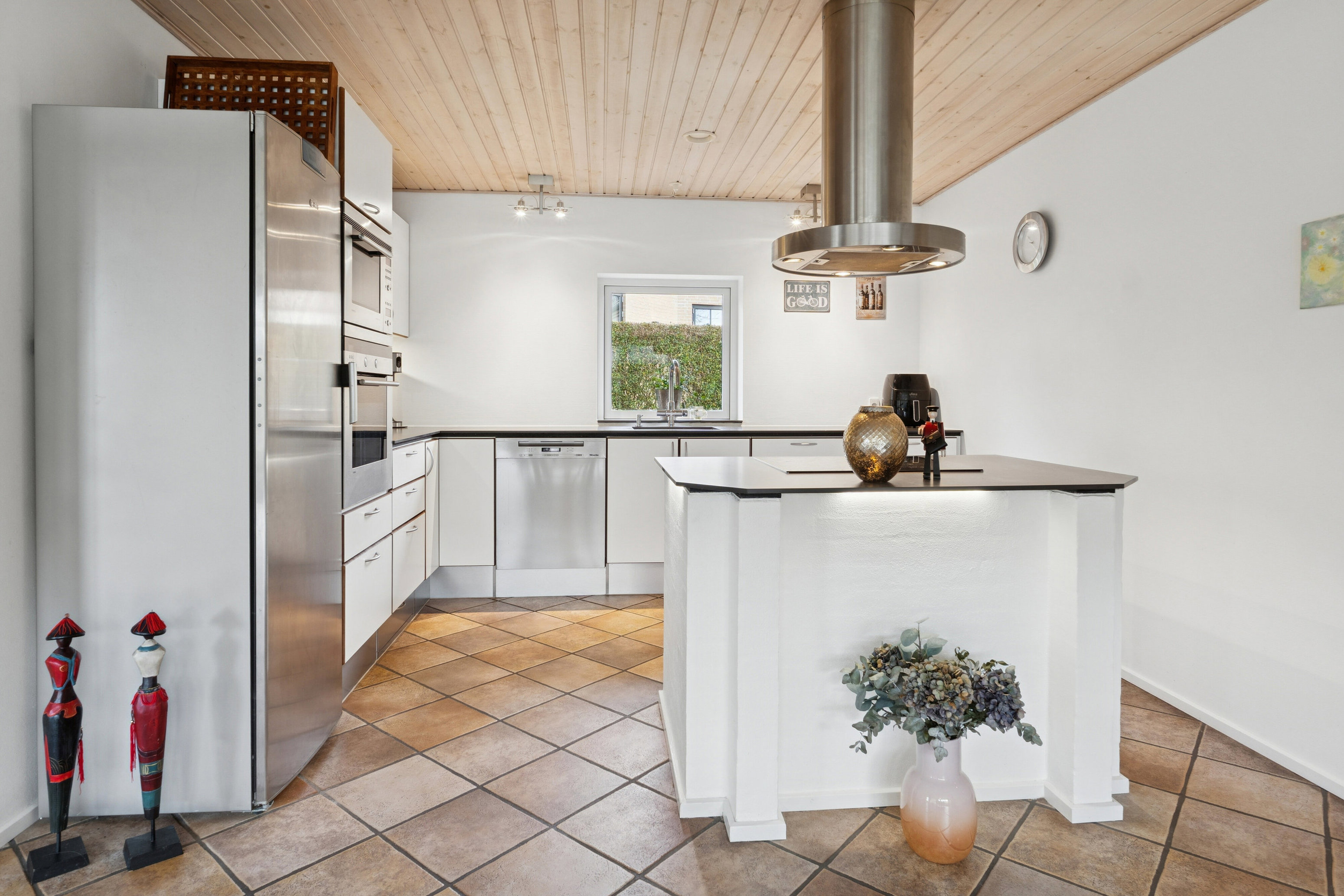 Villaen toner frem med en klassisk, rød facade, og på det mørke tag ligger et solcelleanlæg, der spiller perfekt sammen med et husstandsbatteri og en moderne luft-til-vand-varmepumpe. Inden døre er indeklimaet i topklasse, hvilket I kan takke både genveksanlægget og det formidable lysindfald for.