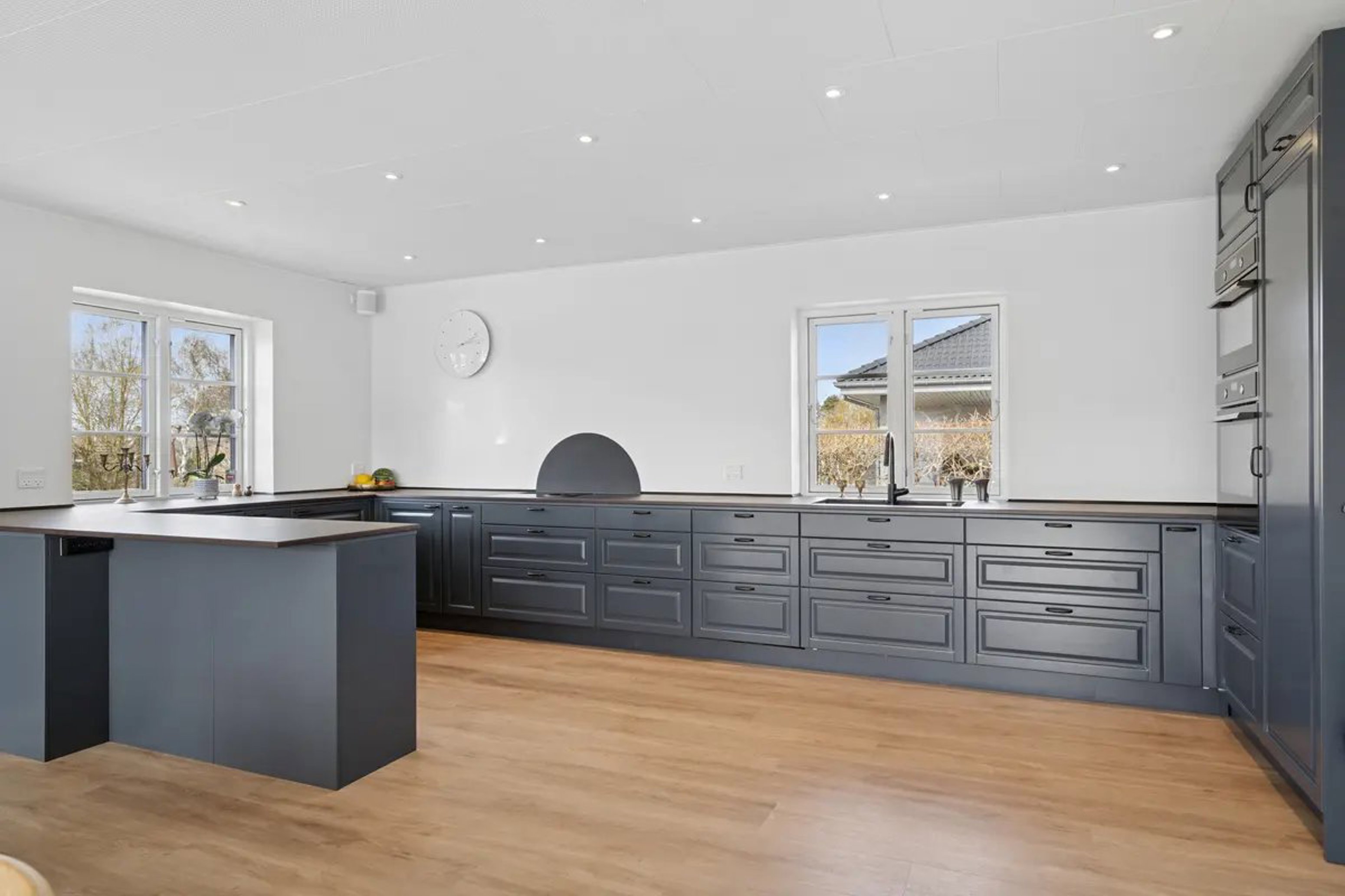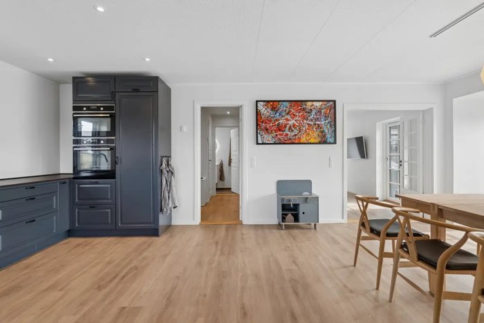 Indendørs træder du ind i en bolig, hvor der er kælet for detaljerne og gulvvarme i hele ejendommen. De lyse og åbne rum giver en behagelig atmosfære, og især køkken-alrummet fungerer som hjemmets hjerte – her er der plads til både hverdagsliv og hyggelige stunder. Tre gode værelser giver mulighed for børneværelser, kontor eller gæster, og de to badeværelser sikrer, at morgenerne forløber uden stress og jag.