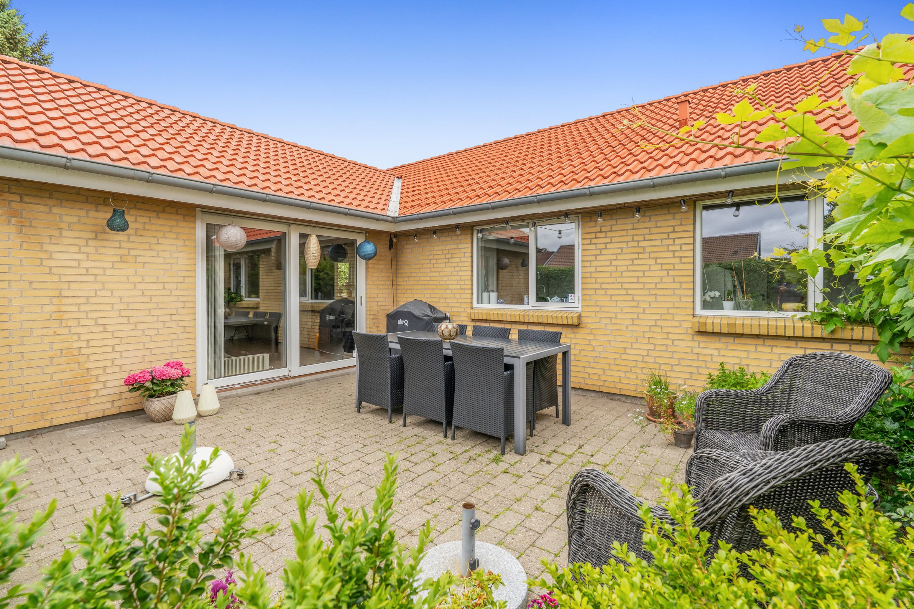 Til boligen hører en hyggelig have med meget privat og aflukket terrassemiljø mod syd/vest. Her får man den fulde gårdhavefornemmelse, og kan nyde solen og ikke mindst roen hele dagen. Det samme gør sig gældende på områdets fællesarealer hvor der er masser af plads diverse aktiviteter.