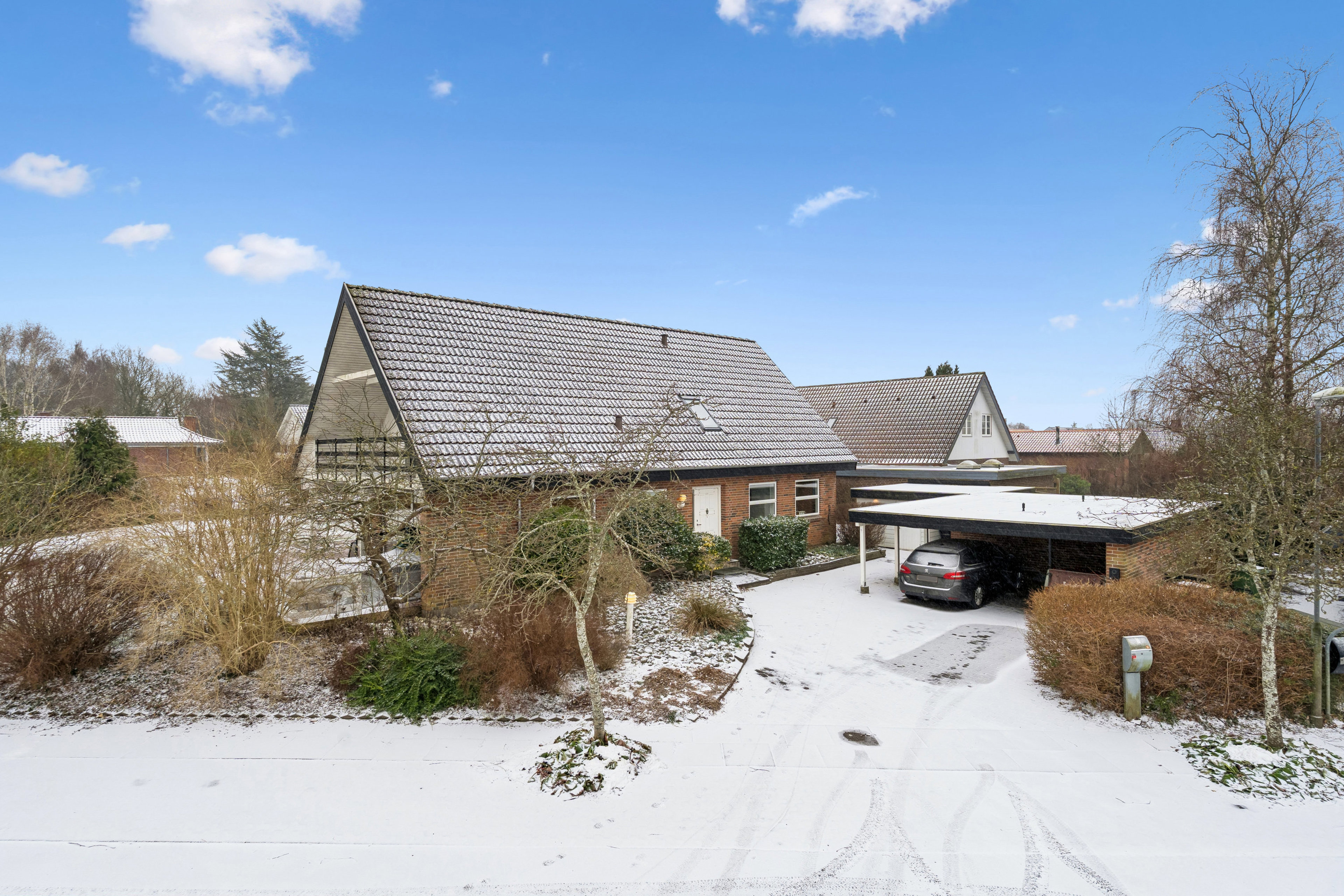 Udendørs har denne bolig også meget at byde på med en dobbelt carport med tilhørende redskabsrum samt et ekstra skur. Den hyggelige have er anlagt med minimal vedligeholdelse og indeholder en stor sydvendt træterrasse, hvor der er plads til både leg, afslapning og hyggelige stunder med familie og venner.
