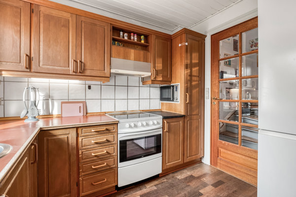 Indenfor bydes du velkommen i en entré med trappe til førstesalen. Boligens stueplan er indrettet med fokus på samvær og funktionalitet. Køkken og opholdsrum ligger i naturlig forlængelse af hinanden og skaber et lyst og indbydende miljø, hvor familien kan samles om både hverdag og gæster. Fra stuen er der direkte adgang til en dejlig udestue, som fungerer som et ekstra opholdsrum i store dele af året. Her kan du nyde lyset og haven i læ for vind og vejr og skabe en glidende overgang mellem inde- og udeliv.