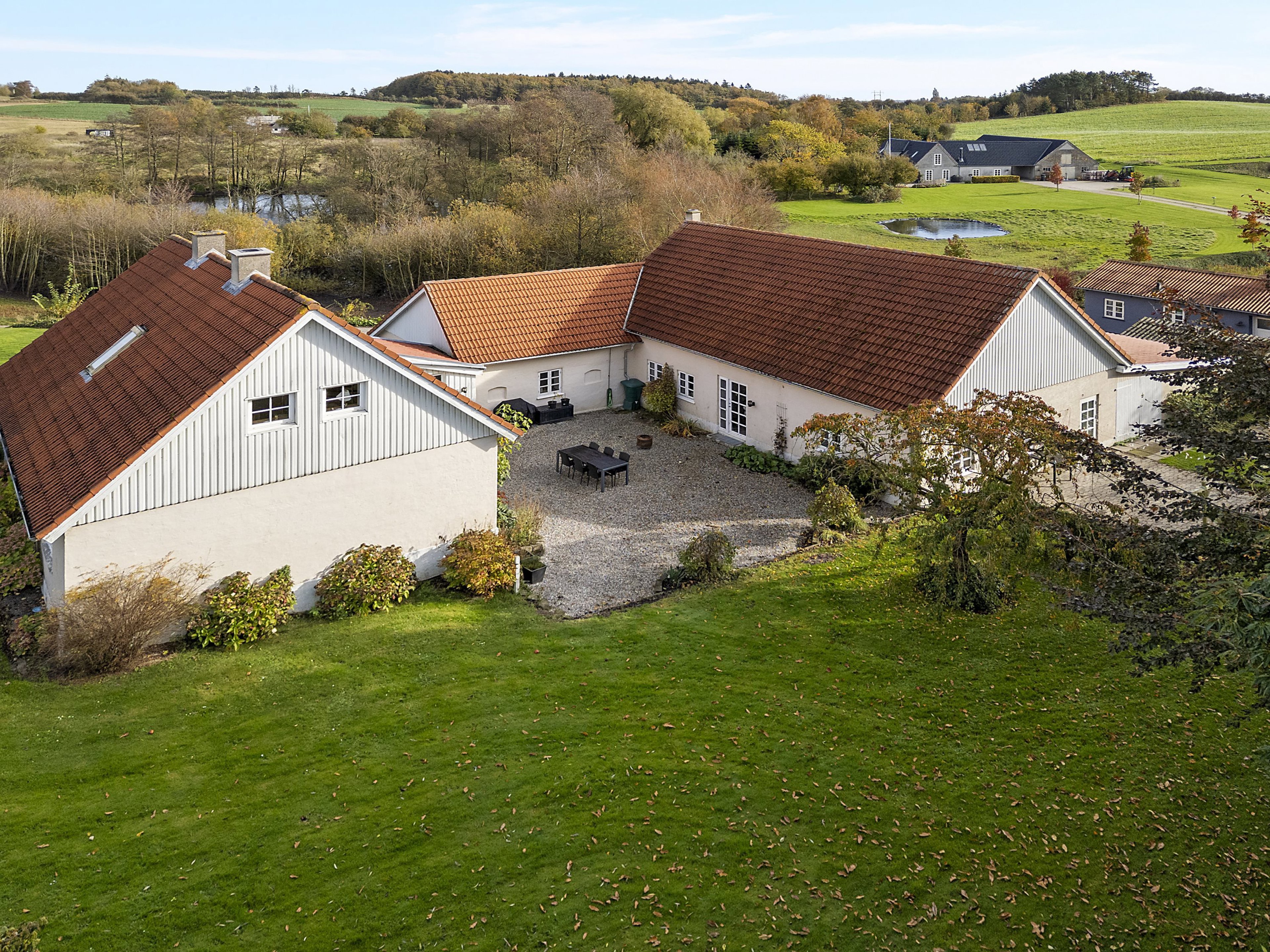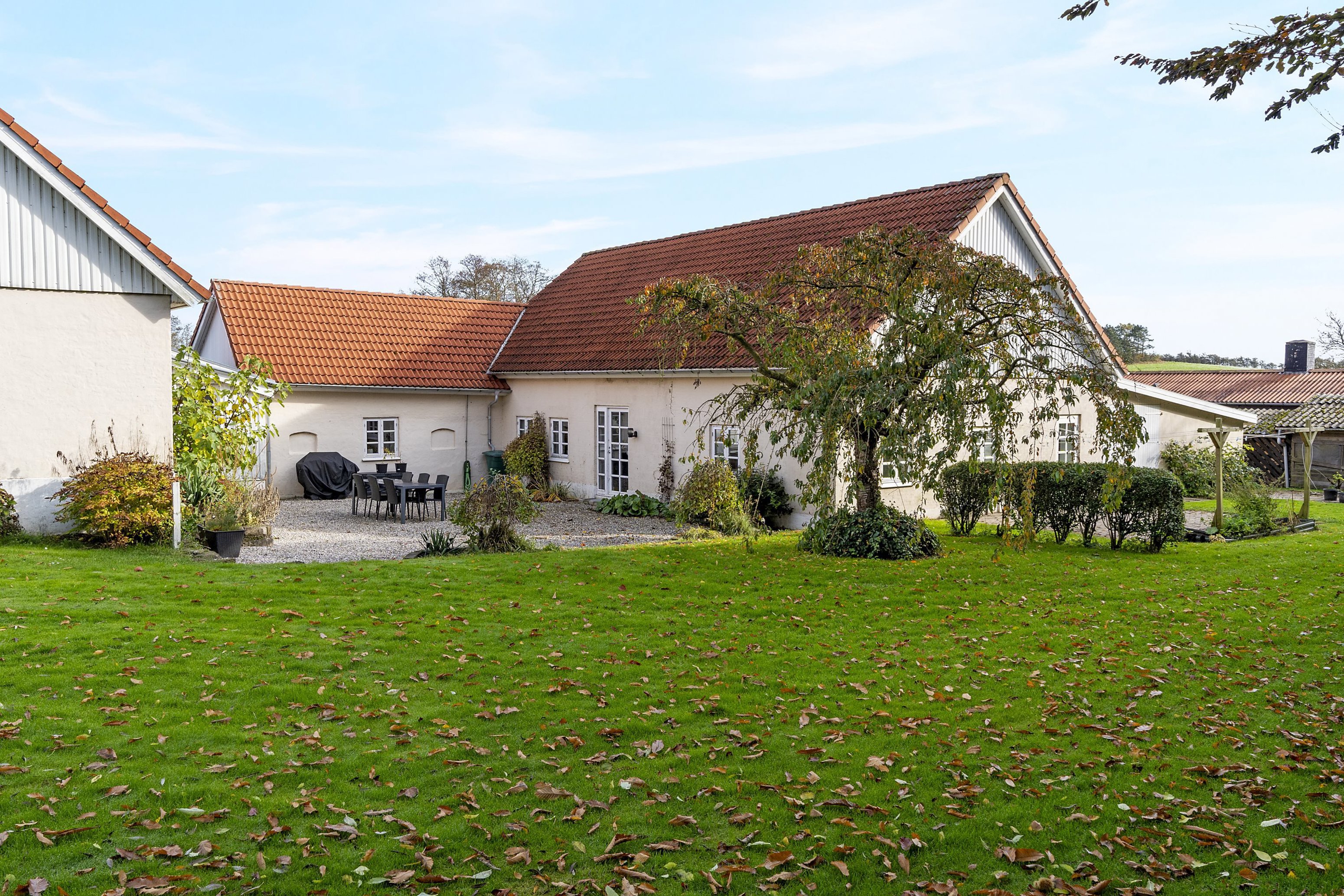 Boligen ligger omgivet af åbne marker og grøn natur, hvilket giver en skøn fornemmelse af ro og privatliv. Samtidig er der kun omkring 10 minutters kørsel til både Haarby og Glamsbjerg, hvor du finder dagligvarebutikker, skoler, institutioner, fritidsaktiviteter og alt det, du skal bruge i hverdagen. Der går endda skolebus lige fra ejendommen – en praktisk detalje for børnefamilien.