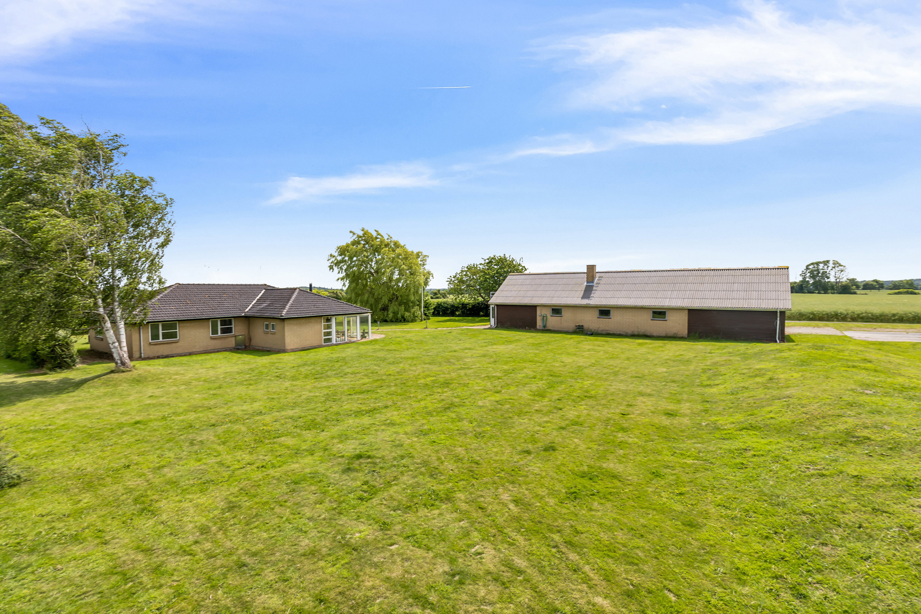 Beliggenheden er rolig og naturskøn med åbne marker og grønne omgivelser, som indbyder til både afslapning og udeliv. Her kan I nyde stilheden og den friske luft, samtidig med at I fortsat har nem adgang til hverdagens fornødenheder som indkøb, skole og øvrige faciliteter inden for overskuelig afstand.
