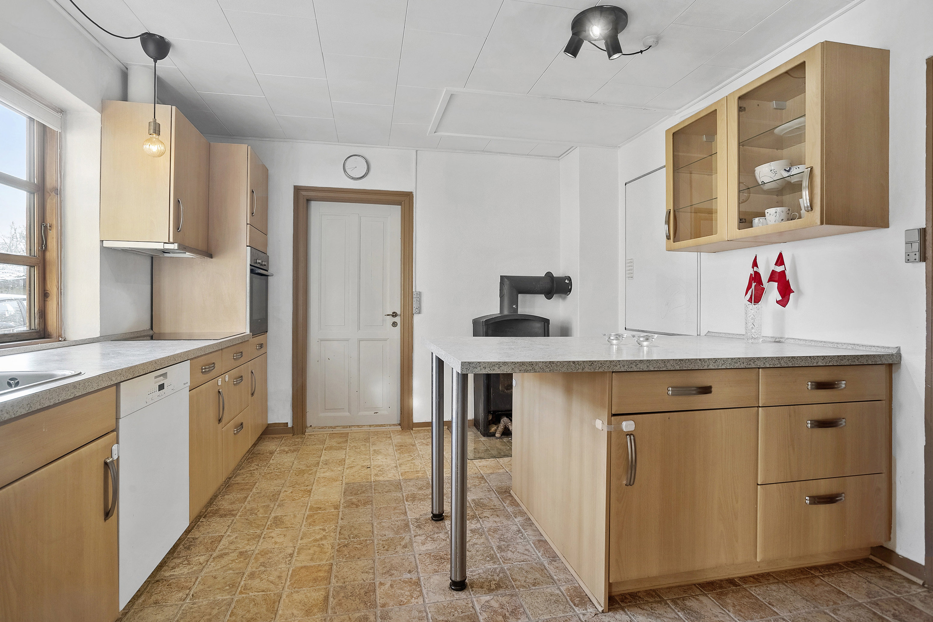 Det hele fremstår funktionelt og klar til at blive taget i brug, som det er, så I i jeres eget tempo kan vurdere, om I vil modernisere og sætte jeres eget præg på et eller flere rum. Huset opvarmes med pillefyr, og der er meget praktisk solceller på taget, som sørger for det varme vand.