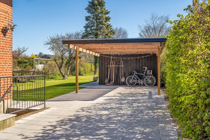 Udendørs venter en skøn og privat have – ideel til både afslapning, grillaftener og hverdagsliv i det fri. Her er plads til at nyde solen og skabe dit eget uderum. Derudover får du en carport på 23 kvm samt et praktisk udhus.