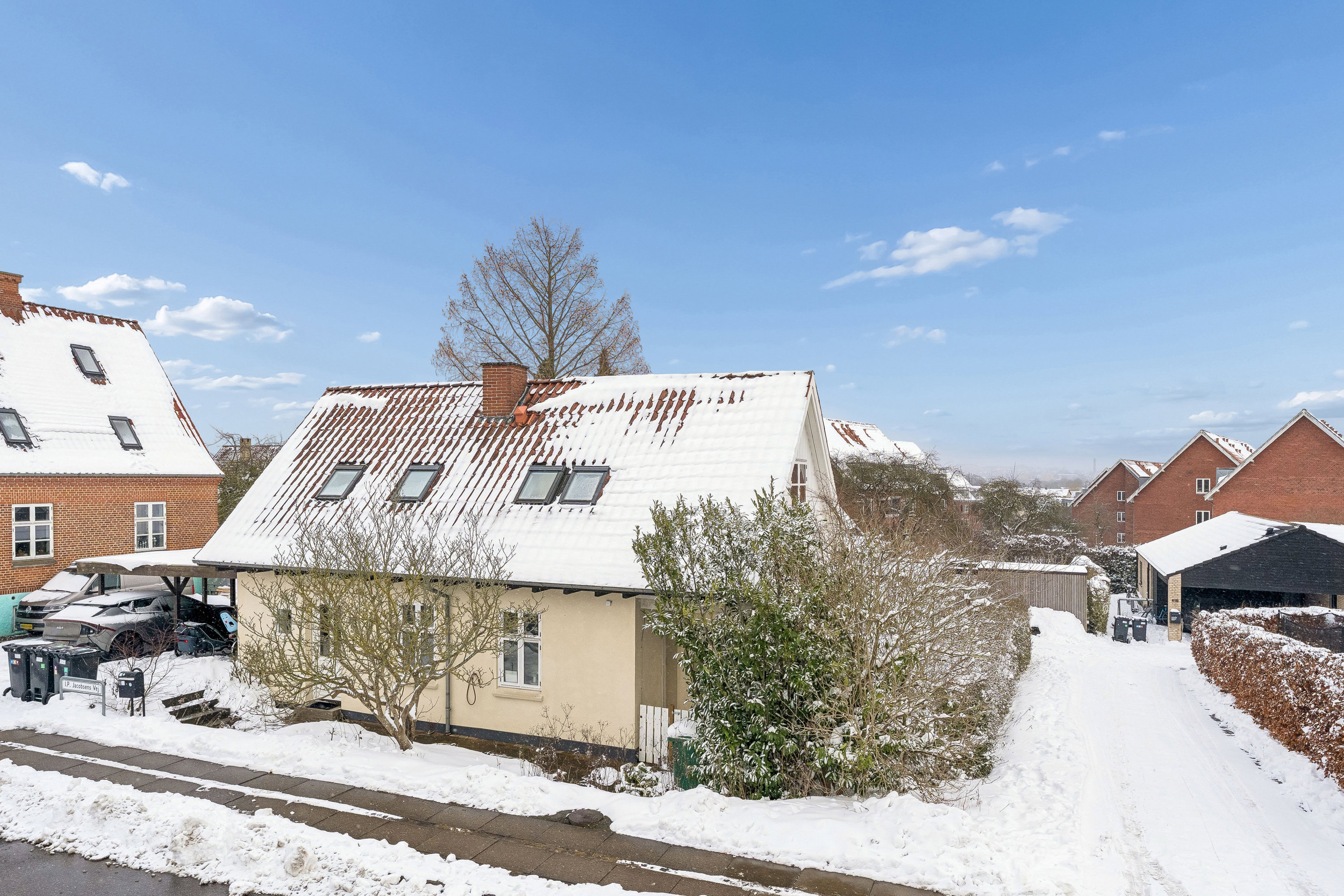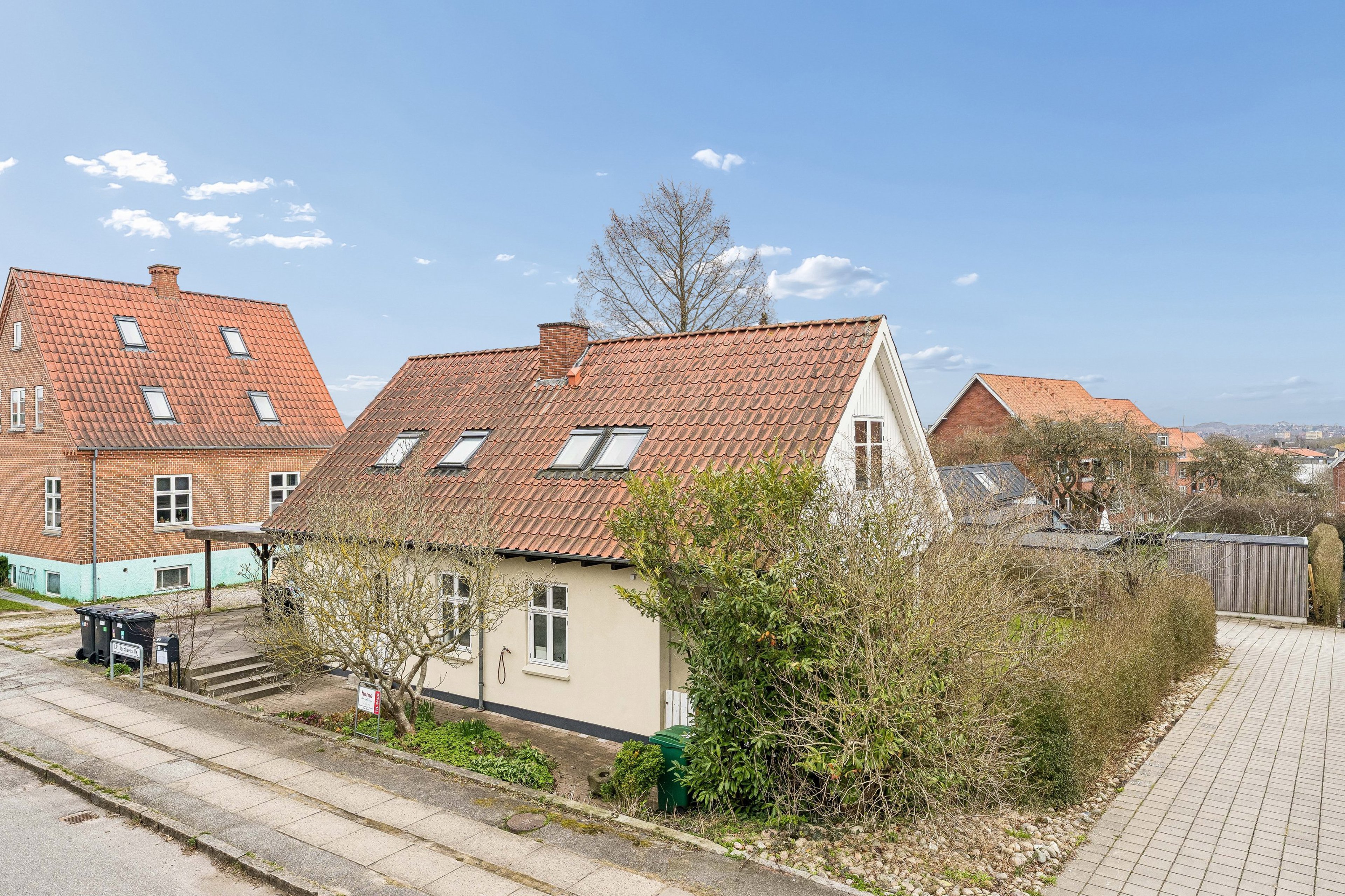 Boligen er beliggende på en stille og eftertragtet villavej, omgivet af grønne haver og med et trygt nærmiljø. Her har I kort afstand til alt, hvad hverdagen kræver: skole, daginstitutioner, idrætsfaciliteter, dagligvareindkøb og offentlig transport. Brabrandstien og Brabrand Sø ligger lige i nærheden og inviterer til gåture i det fri – samtidig når I Aarhus C på blot 10-15 minutter på cykel. Derudover er der kun få minutters gåafstand til den populære Åby Skole.