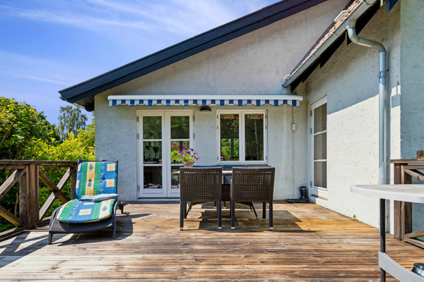 Boligens hjerte er den rummelige spisestue, der er åben til en dejlig opholdsstue. De to stuer adskilles af franske døre. Opholdsstuen har ligeledes udgang til terrassen, hvilket skaber en naturlig forlængelse af boligen til udelivet.