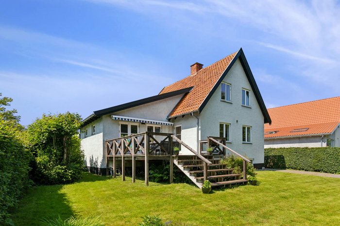 Ved ankomsten bydes du velkommen i en indbydende entré med trappe til første sal. Stueplanet rummer et stort gæstetoilet samt et rummeligt spisekøkken, hvorfra der er direkte udgang til en stor, solrig terrasse – perfekt til hyggelige stunder under åben himmel.