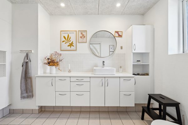 I stueplan finder I også et soveværelse, et rummeligt badeværelse, bryggers og entré med trappe til 1. sal. På første sal venter tre gode værelser, et ekstra toilet samt en repos med mange indretningsmuligheder – oplagt som kontor- eller loungeområde.