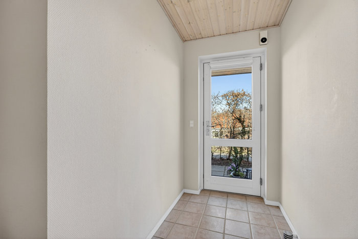 Røde murstensfacader og et vedligeholdelesnemt valmtag i tegl hører til ejendommens ydre karakteristika, og huset skærmes lidt ekstra fra vejen af den dobbelte carport, som I deler med naboen. Inde fremstår boligen i meget velholdt stand, så selvom inventaret er originalt, kan I sagtens flytte ind, som det er. Et godt lysindfald og materialer i neutrale toner sætter stemningen på tværs af alle afdelinger, og indretningsmæssigt har man fået mest muligt ud af pladsen.