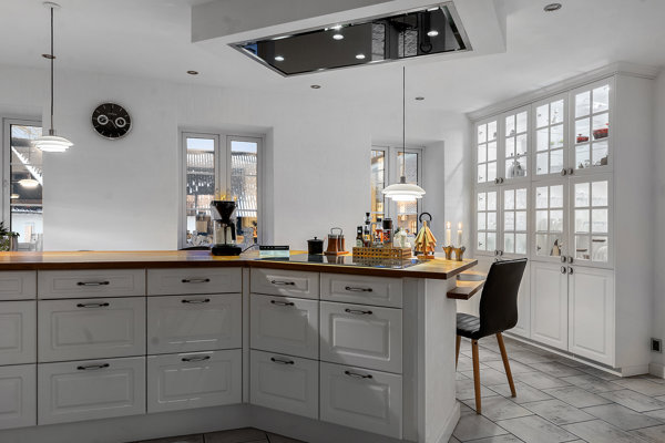 Man bydes velkommen i entréen/bryggers med plads til hverdagens praktiske gøremål og adgang til et badeværelse. Herfra er der videre adgang til det lyse køkken/alrum, som naturligt bliver hjemmets samlingspunkt med god bordplads og plads til både madlavning og samvær. I åben forlængelse ligger spisestuen, der elegant binder køkken og ophold sammen.