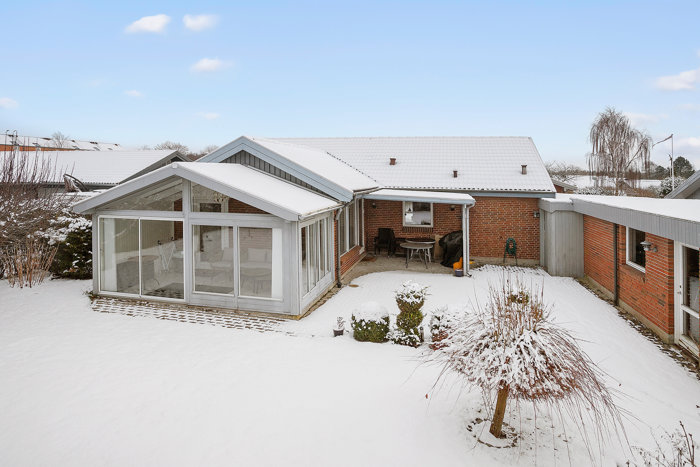 Grunden er på 586 kvadratmeter, så den ligesom boligen er overkommelig at passe i hverdagen, samtidig med at den rummer alt, hvad man behøver. I får således en hyggelig have med terrasse, så I altid kan komme udenfor og nyde den friske luft og solskinnet, ligesom her er frugttræer med æbler og kirsebær. Pasningen er stort set et spørgsmål om at slå græs en gang imellem, hvilket I eventuelt kan overlade til en græsrobot.