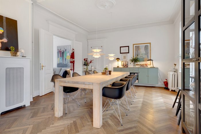 Palævinduer, sildebens gulve, paneler, stuklofter m.m. skaber helt unikke rumvirkninger, som både rammer krop og sjæl.