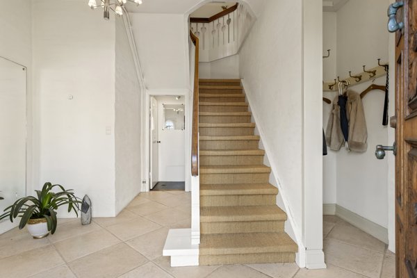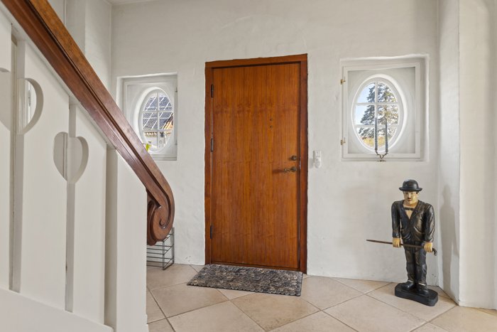 Indvendigt byder boligen på en atmosfære, man sjældent finder i nyere huse. Her er lysindfald fra flere verdenshjørner, smukke gulve, klassiske fyldningsdøre og detaljer, der fortæller historien om et hjem, der er blevet passet på. Opholdsrummene er indbydende og rummelige med plads til både hverdag og gæster, mens vinduespartierne skaber en fin forbindelse til haven.