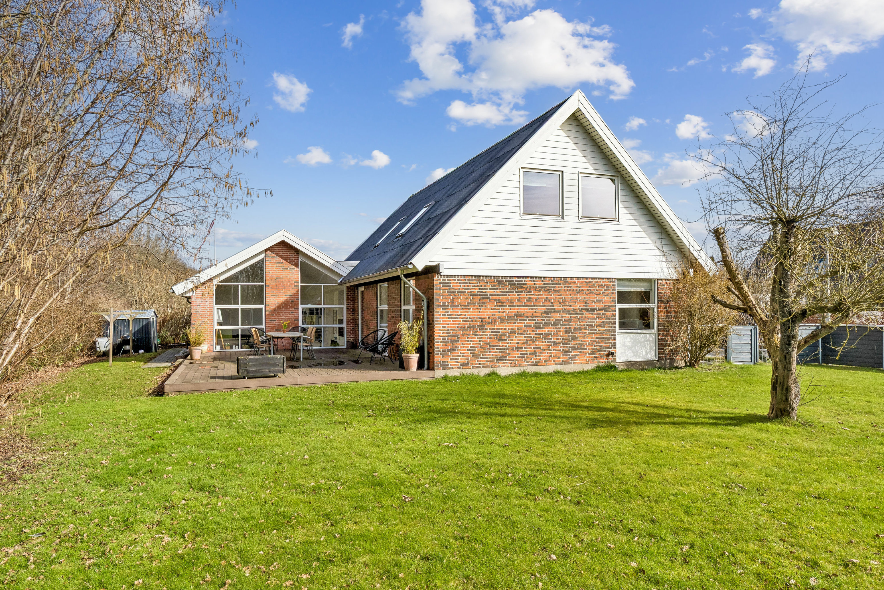 Haven er anlagt med fokus på nem vedligeholdelse og byder på fliseindkørsel, hegn samt en hyggelig og solrig terrasse i composit, hvor udelivet kan nydes i rolige omgivelser.