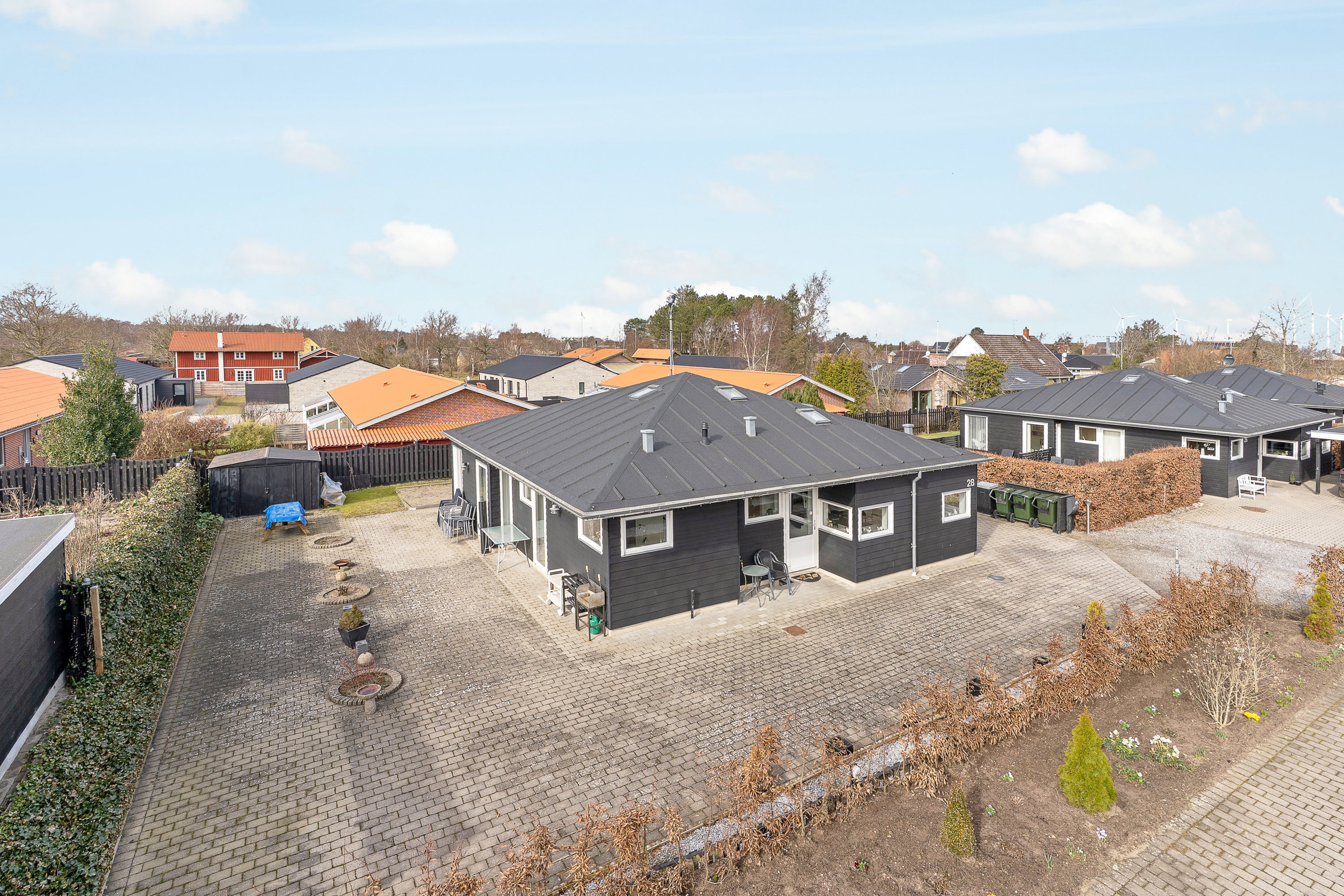 Huset byder på en overskuelig grund på 597 m². Indenfor får du en gennemtænkt planløsning med hele 3 gode værelser og 2 badeværelser – det ene med bruseniche og det andet med stort badekar.