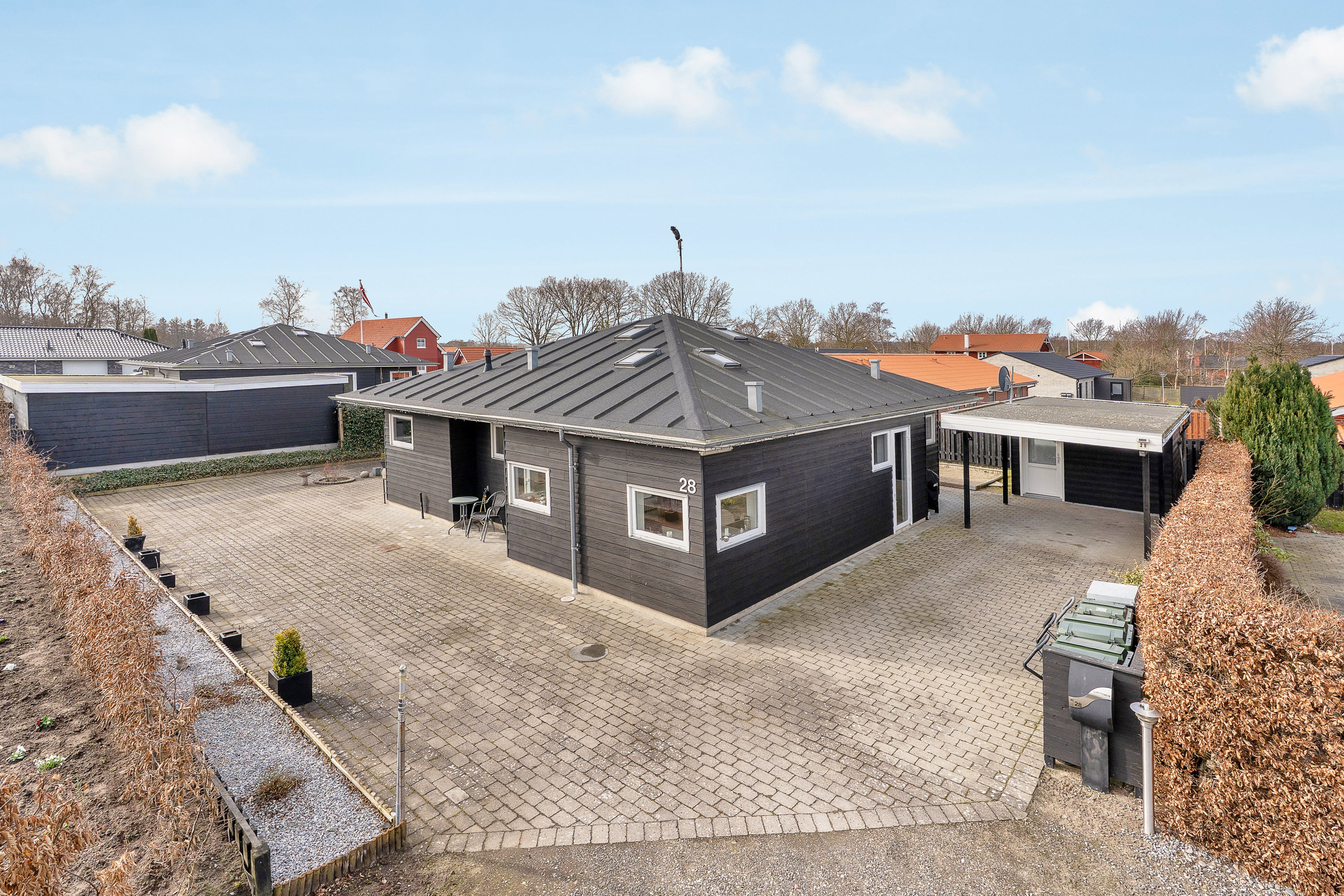 Til ejendommen er ligeledes en god carport på 30m2 med godt udhus/værksted. Ligeledes er der anlagt petanque bane ved ejendommen og en nem have.
