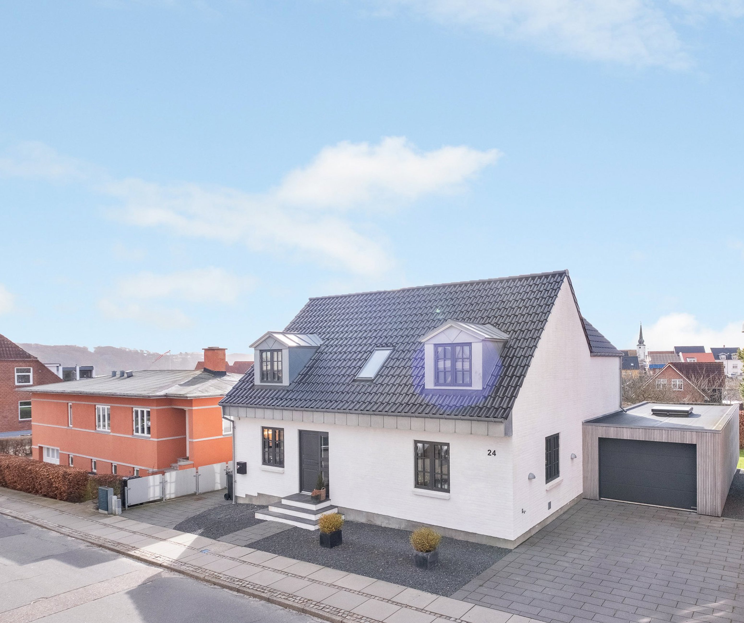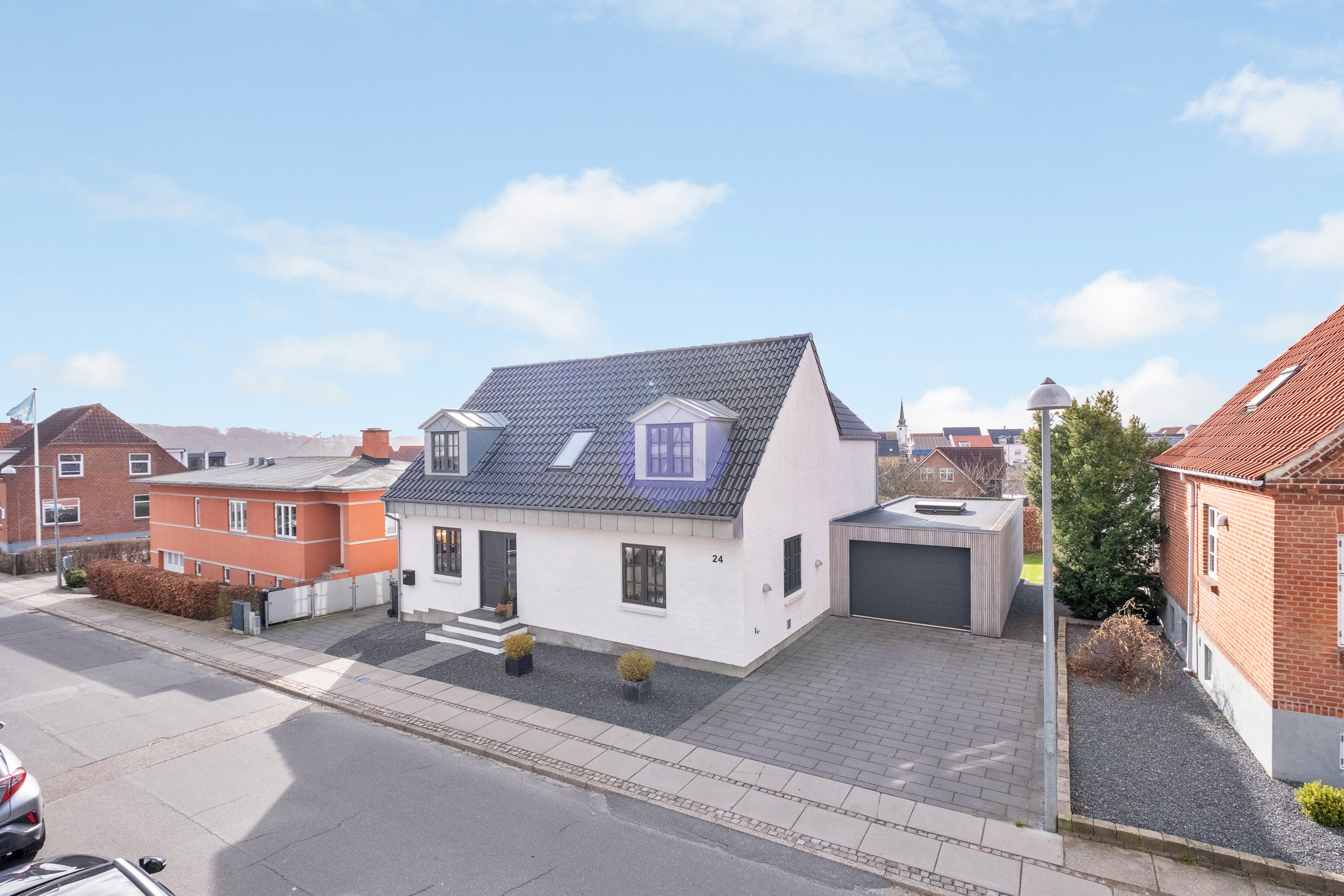 Man skal nærmest have luppen frem, for at finde noget, der ikke lige spiller på denne drøm af en villa i Skanderborg. Huset fremstår inde som ude fuldt moderniseret med kompromisløse løsninger og lækre materialer fra ende til anden. Foruden 170 boligkvadratmeter får I også 66 m2 kælder, en muret garage med hejseport samt et fantastisk udemiljø mod syd med blandt andet en stor træterrasse i niveau.