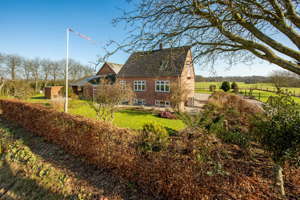 Ejendommen er idyllisk placeret i det åbne landskab lige uden for Haderslev, hvor du hver dag kan nyde udsigten over marker og natur. Her får du følelsen af fred og ro, samtidig med at byen og hverdagens faciliteter fortsat er inden for bekvem afstand.
