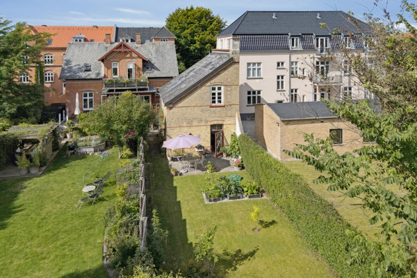 home Dalum byder velkommen til et ganske særligt hjem, hvor originale detaljer går hånd i hånd med moderne komfort og æstetik. Det 105 m² store byhus ligger tilbagetrukket i en charmerende baggård til Lahnsgade, ganske ugeneret fra trafik og støj, med direkte adgang og egen brugsret til en hyggelig have tilstødende boligen, der sætter stemningen og hvor udelivet kan nydes i fulde drag.