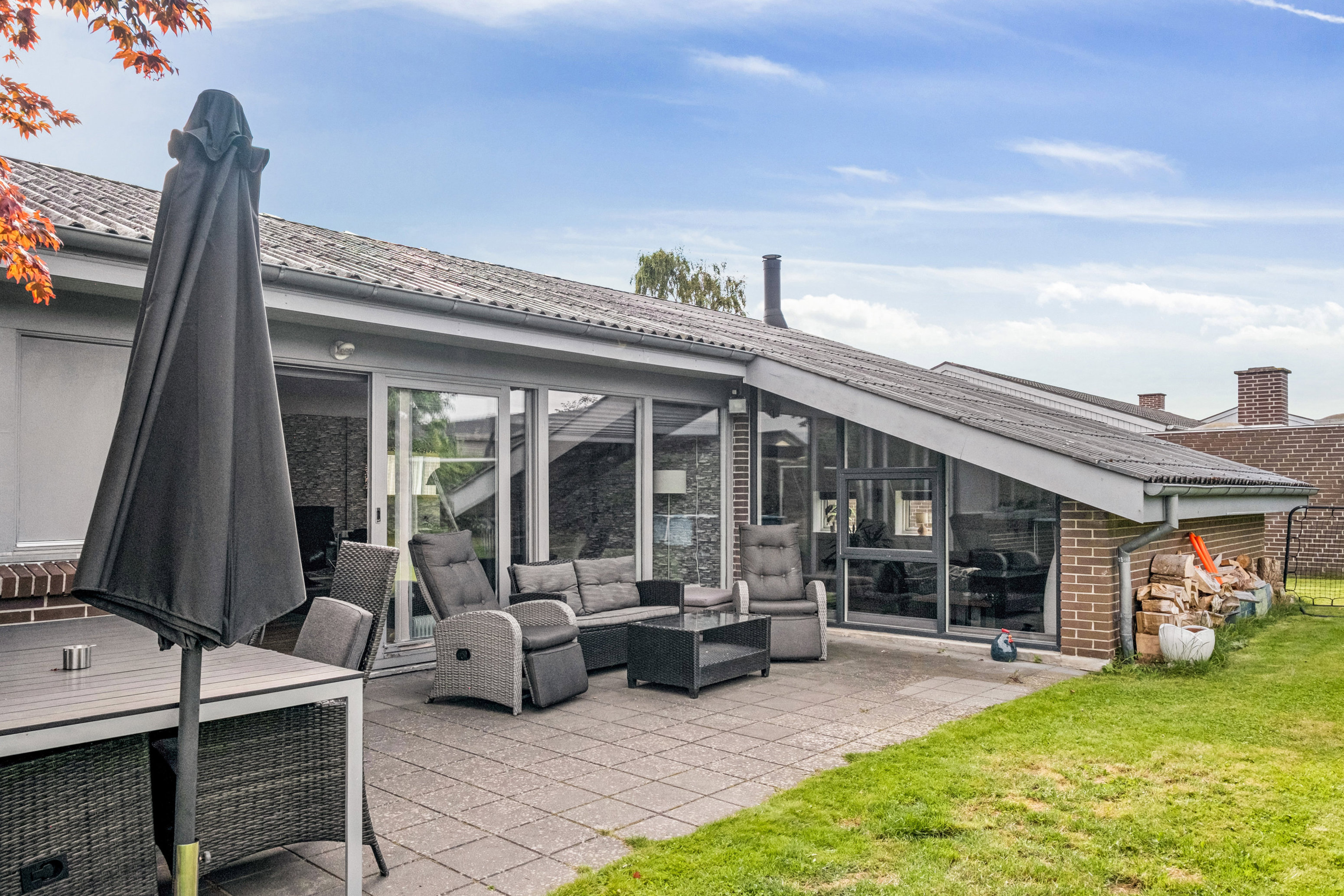 Haven er en sand oase med masser af plads til leg, afslapning og sommerens hyggelige sammenkomster. Den er perfekt orienteret mod solen, og de dejlige terrasseområder indbyder til alt fra morgenkaffe til grillaftener med venner og familie. Foran huset er der en integreret carport, og bagerst et rummeligt redskabsskur.