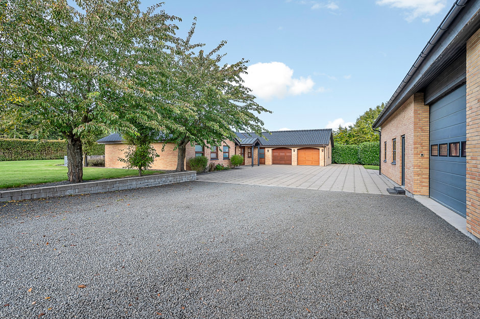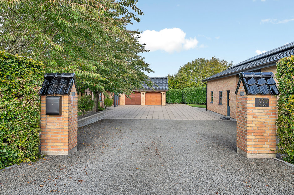 Gennemført kvalitetsejendom, her er en fuldmuret bolig fra 2008 med et bebygget areal på 262 kvm, heraf dobbelt integreret garage med gulvvarme på 54 kvm. Herudover separat isoleret hal/garagebygning på 193 kvm. Hele herligheden er beliggende på en stor lukket grund på i alt 2.360 kvm.