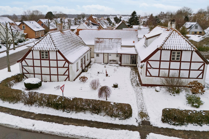 Huset blev opført helt tilbage i 1850, og charmen kan mærkes i hver en krog. Bindningsværk, småsprossede vinduer og en slagbank i køkkenet – nostalgien løber som en rød tråd og lægger op til, at I kan bevare et væld af originale detaljer.