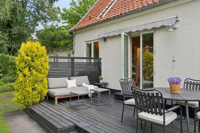 På den vestvendte terrasse nyder I aftensolen og grillmiddage. Imens udgør den ugenerede have en skøn oase til leg, aktiviteter og afslapning, hvor I får både græsplæne, solkroge og fin, varieret beplantning, der skaber et hyggeligt uderum til sommerdagene. I har også en carport samt et isoleret udhus, som også kan bruges til god opbevaring.