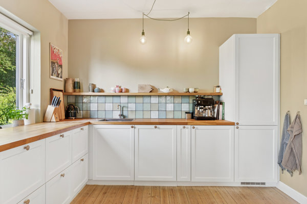 Det rummelige entréområde leder jer til en side til den private afdeling, mens I til modsatte side træder ind i de lyse opholdsrum. Her har I et pragtfuldt køkken-alrum, hvor køkkenet står med stilfulde elementer, og alrummet har to styks dobbeltdøre ud til terrassen, hvormed der skabes en harmonisk overgang mellem inde og ude. Stuen bliver også et dejligt samlingspunkt til familietid og nærvær, samt en super hyggelig brændeovn.