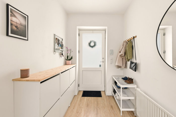 • Stor entré med god opbevaringsplads