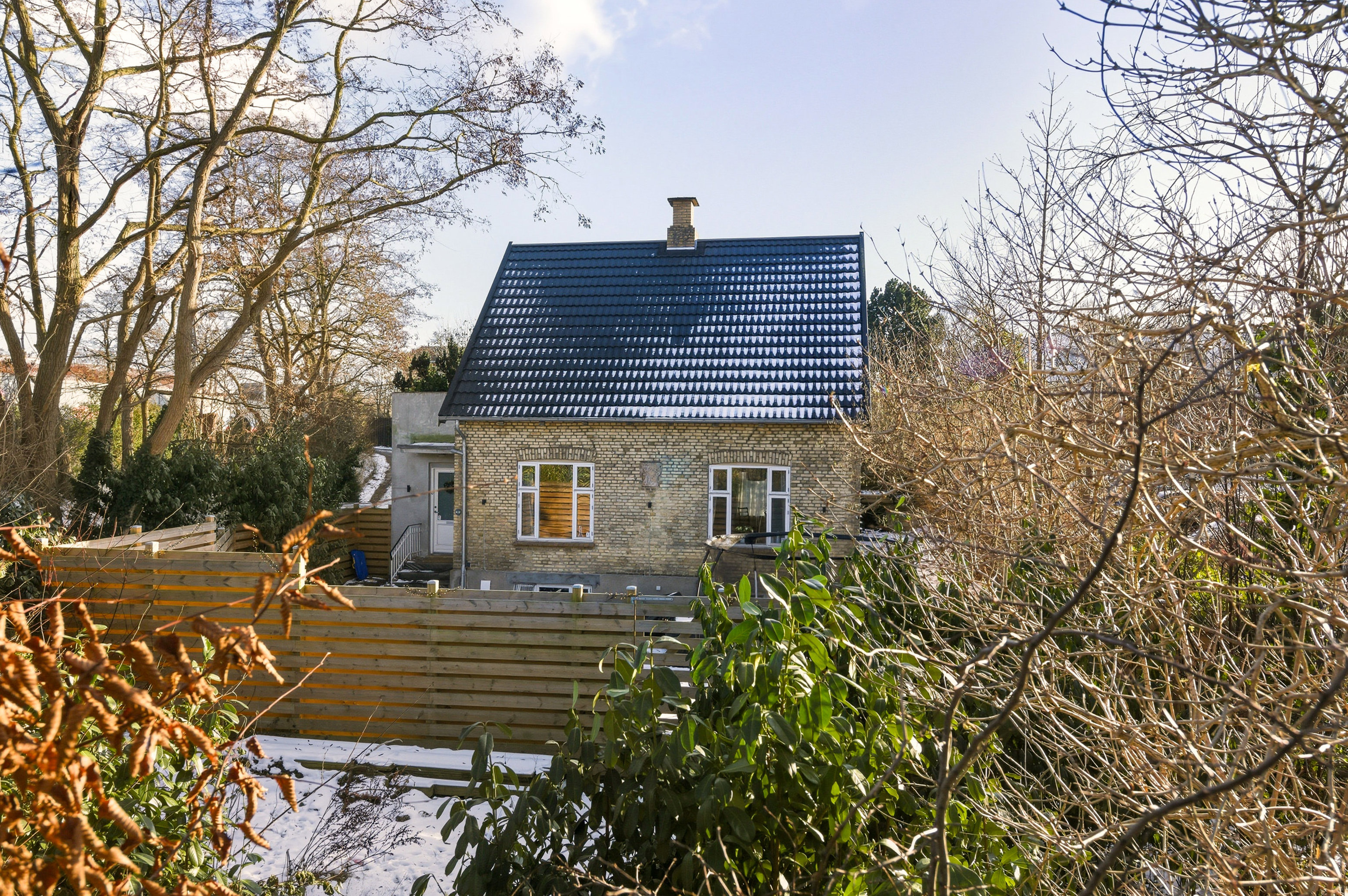 Huset fremstår pænt med murstensfacader, store vinduespartier og et nyere tag fra 2016. Bag huset findes en skøn, privat og solrig have med plads til hele familien, og ejendommen er tilmed beliggende på en lukket vej.