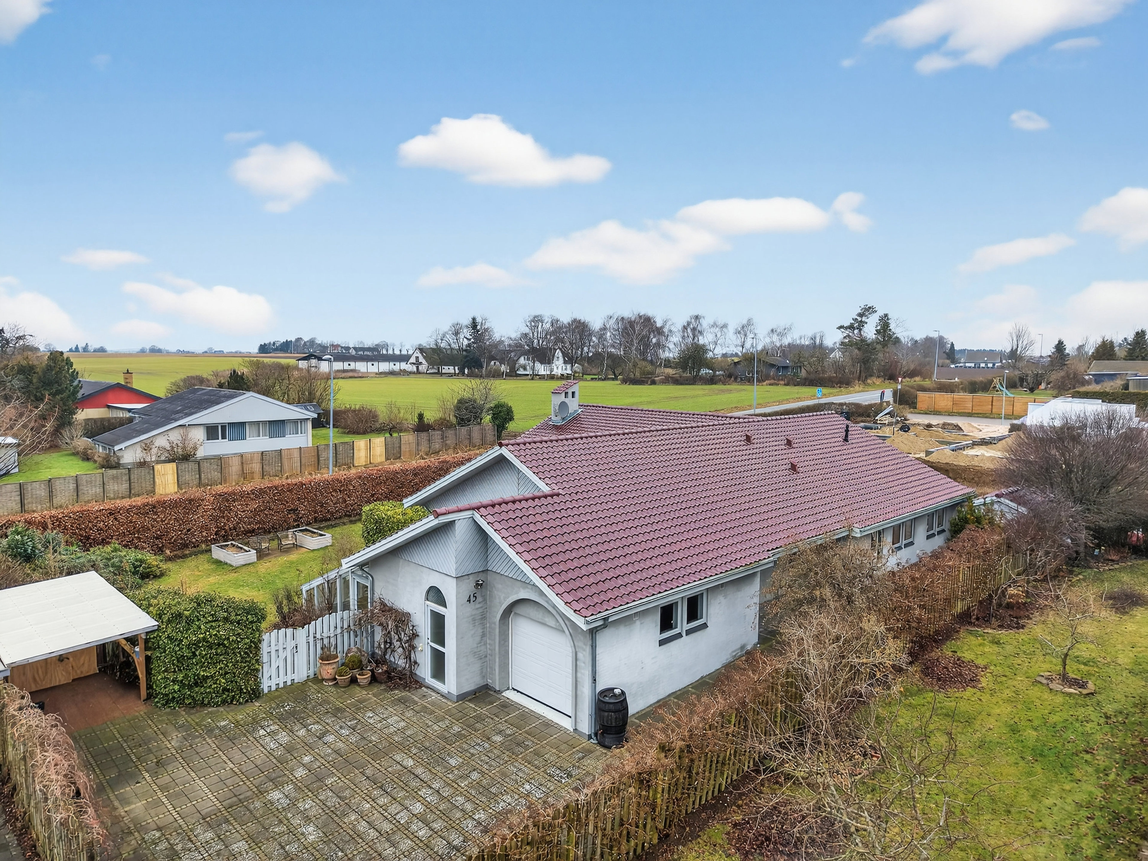 Bemærk i øvrigt, at grunden ligger lidt højt, så regnvand og smeltevand naturligt løber væk fra haven.