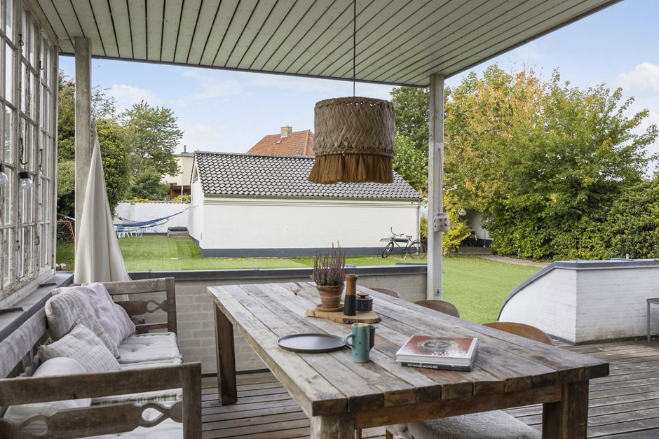 Allerede ved ankomsten fornemmer man, at der venter en ganske særlig boligoplevelse. Ejendommen ligger privat og ugeneret bag en halvmur og en dobbeltgarage, godt afskærmet for nysgerrige blikke.. En smuk, flisebelagt havesti fører jer gennem haven med den vedligeholdelsesvenlige plæne i kunstgræs, hvor børnene kan lege og spille fodbold året rundt. Bag villaen finder I et stemningsfuldt uderum med shelter og bålplads – et naturligt samlingspunkt for hyggelige aftener med familie og venner.