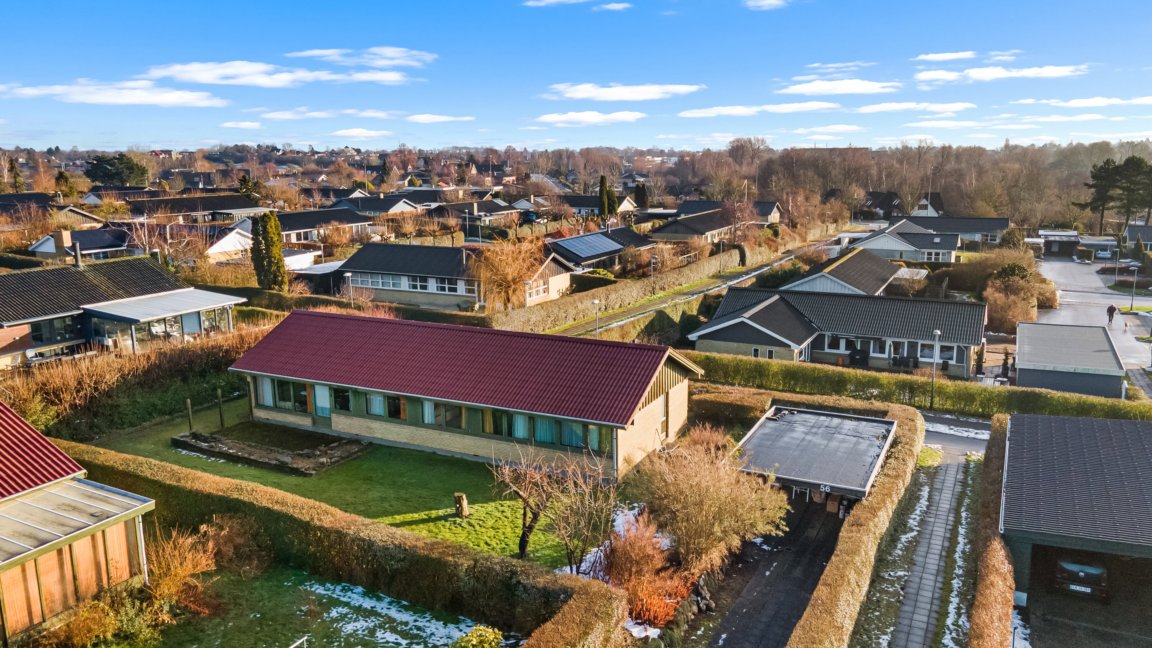 Beliggenheden er helt ideel for børnefamilien. Her bor du på en lukket villavej, tæt på institutioner, skole, indkøbsmuligheder og offentlig transport. Samtidig er der kort afstand til grønne arealer, så naturen altid er lige i nærheden.