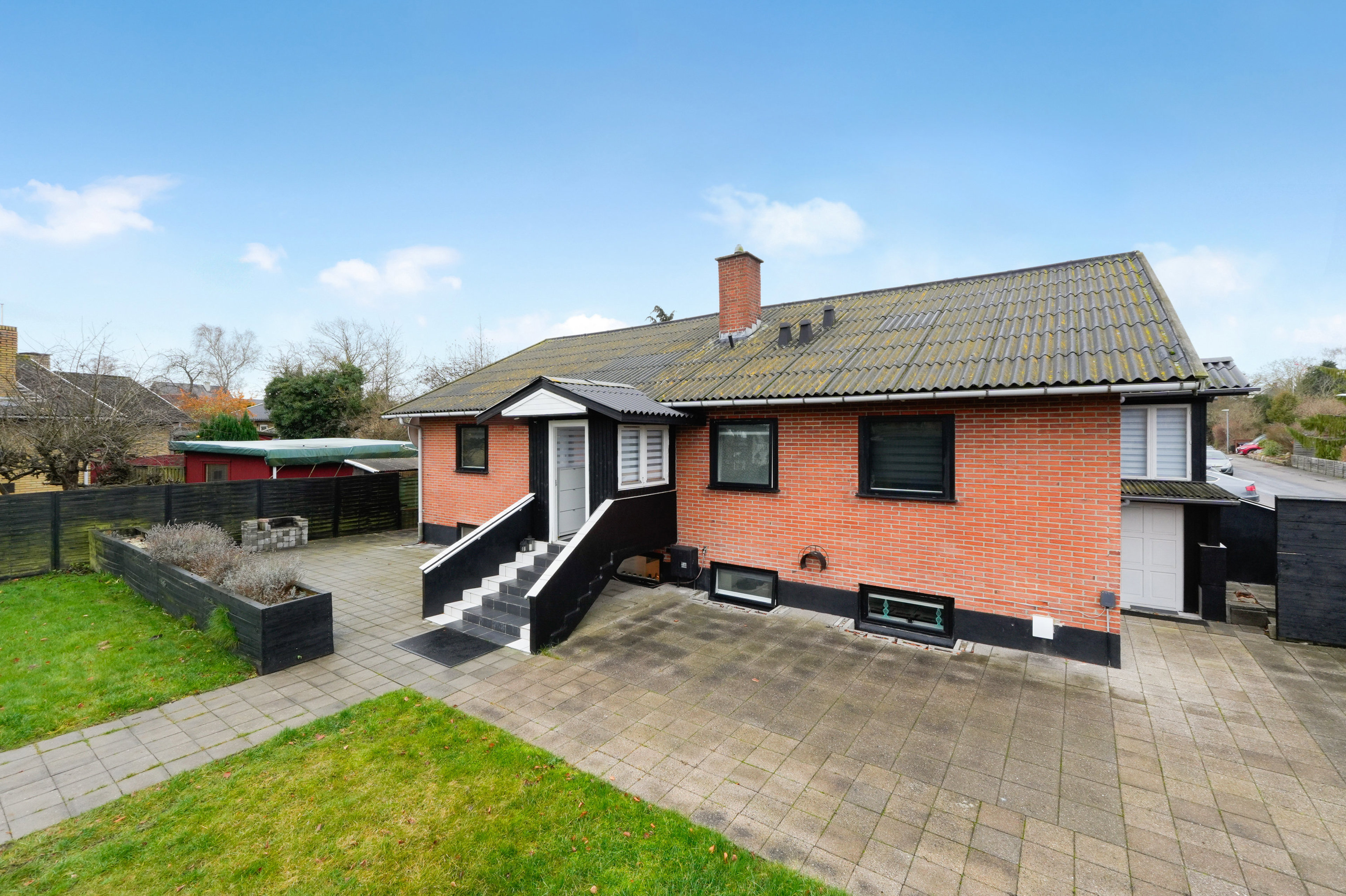 Grunden er på hele 1.106 m2, og da huset ligger nogenlunde centreret, er der opstået en naturlig opdeling af udeområderne. Haven er derfor indrettet med gode terrasser og plads til parkering på begge sider. Men der er meget at fortælle, så lad os uddybe detaljerne ved en fremvisning.