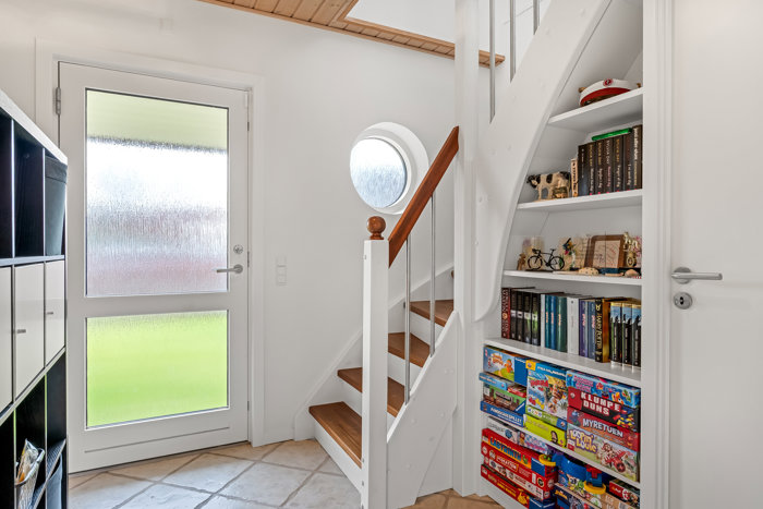 I stueplan finder du desuden entré, badeværelse, et værelse samt et bryggers/baggang med god opbevaringsplads og adgang til haven. Planløsningen gør det nemt at få hverdagen til at fungere.