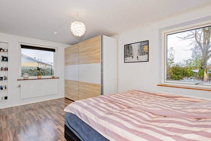 Ejendommen er løbende renoveret, fremstår moderniseret og lige til at flytte ind i. Villaens 202 flotte boligkvm fordeles således: entre/lang fordelingsgang – stor og lækker dagligstue med et flot lysindfald fra de store vinduespartier samt udgang til en buet udsigtsbalkon. Herfra kan udsigten over markerne samt kig til vandet suges helt ind i sindet – spisestuen er åben og lys med en fed detalje i form af vinduer til stuen samt trappenedgang til underetagen – dejligt køkken med mulighed for en lille spiseplads – 2 gode store værelser - badeværelse med badekar - stort bryggers med plads til vandretvaskesøjle, skabe og opbevaringsplads.