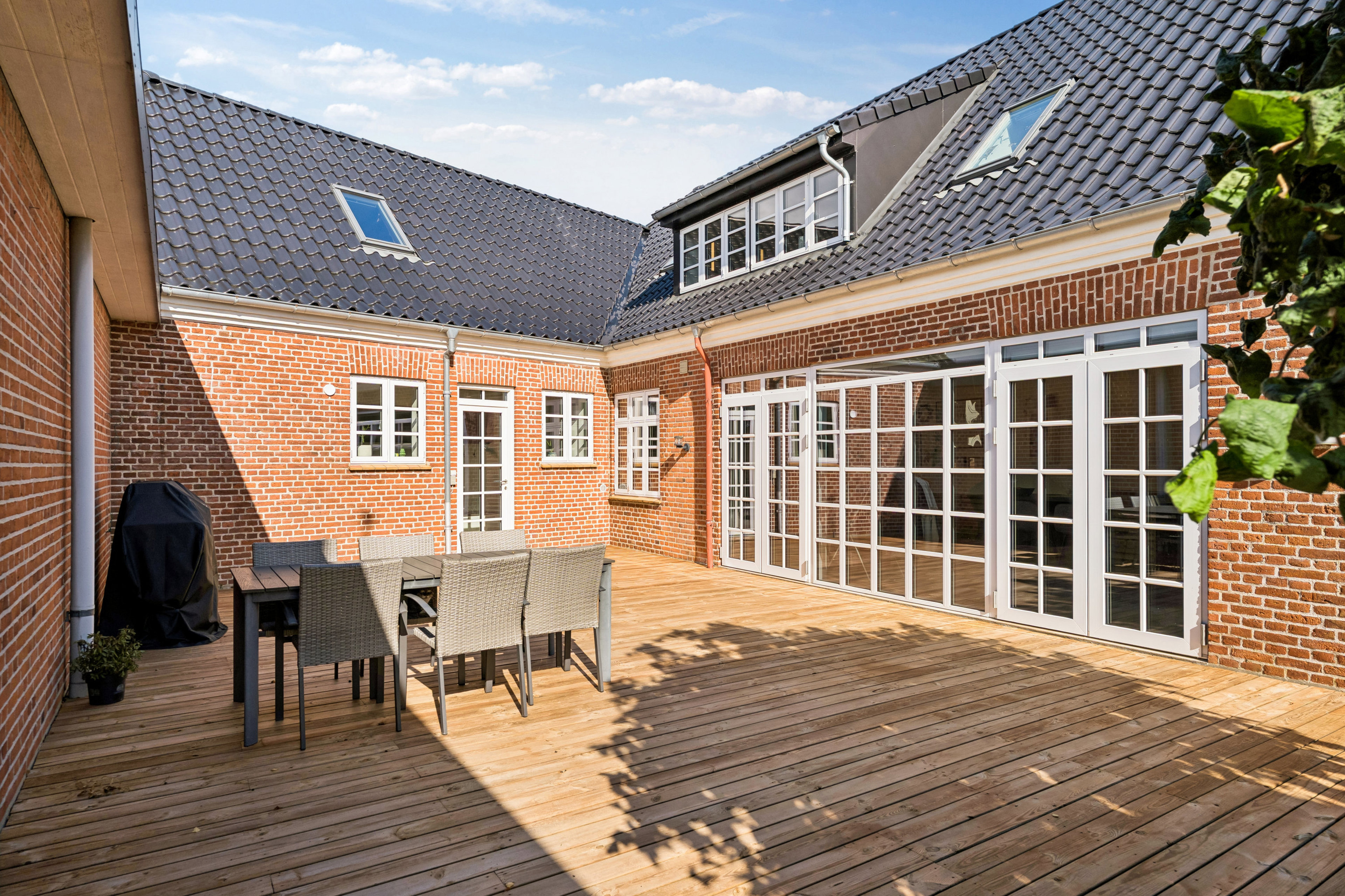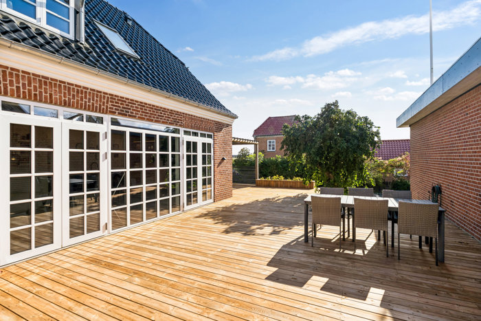 Ejendommen er fuldstændig gennemsyret af gode valg og flotte materialer. Det er en ejendom som ganske enkelt skal opleves! Til boligen hører desuden en hyggelig have og en stor kælder til opbevaring under garagedelen.