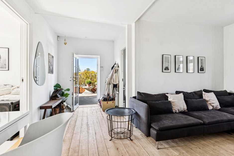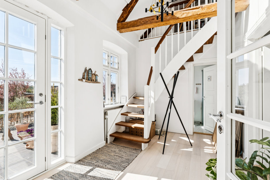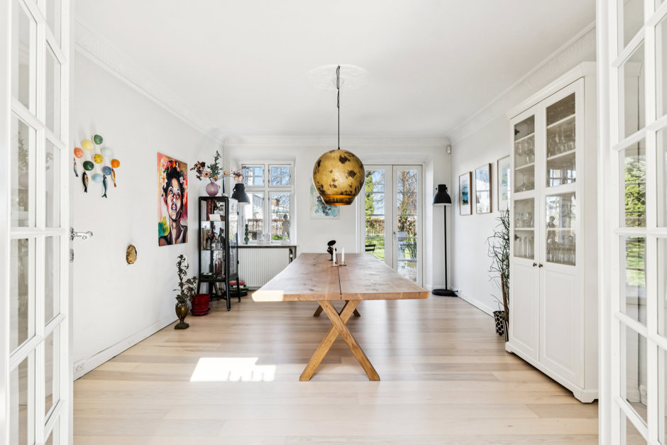 Førstesalen byder på et lyst og åbent repos med mange anvendelsesmuligheder – oplagt som legerum, kontor eller hyggeligt opholdsrum. Herudover finder du flere gode værelser samt et moderne badeværelse i forbindelse med et stort soveværelse.
